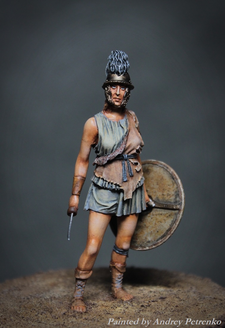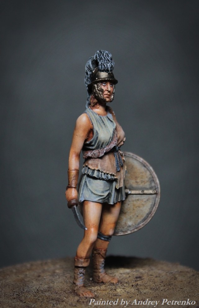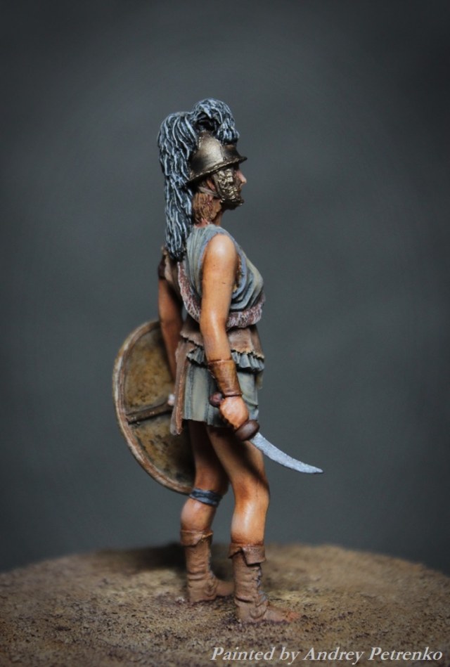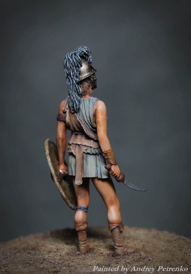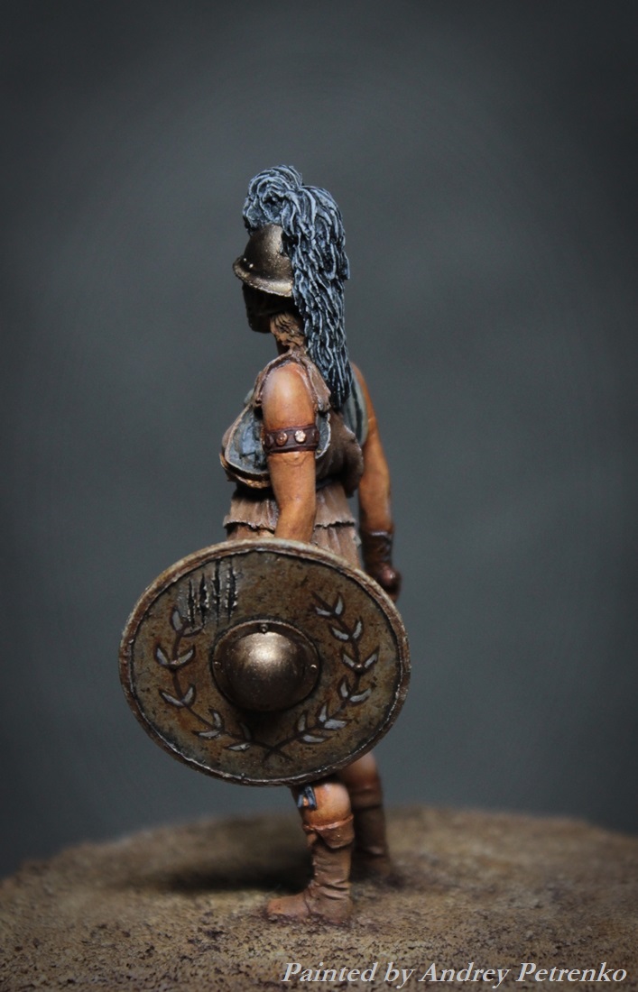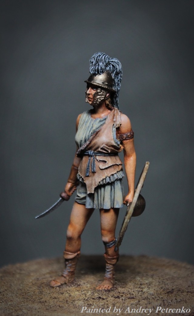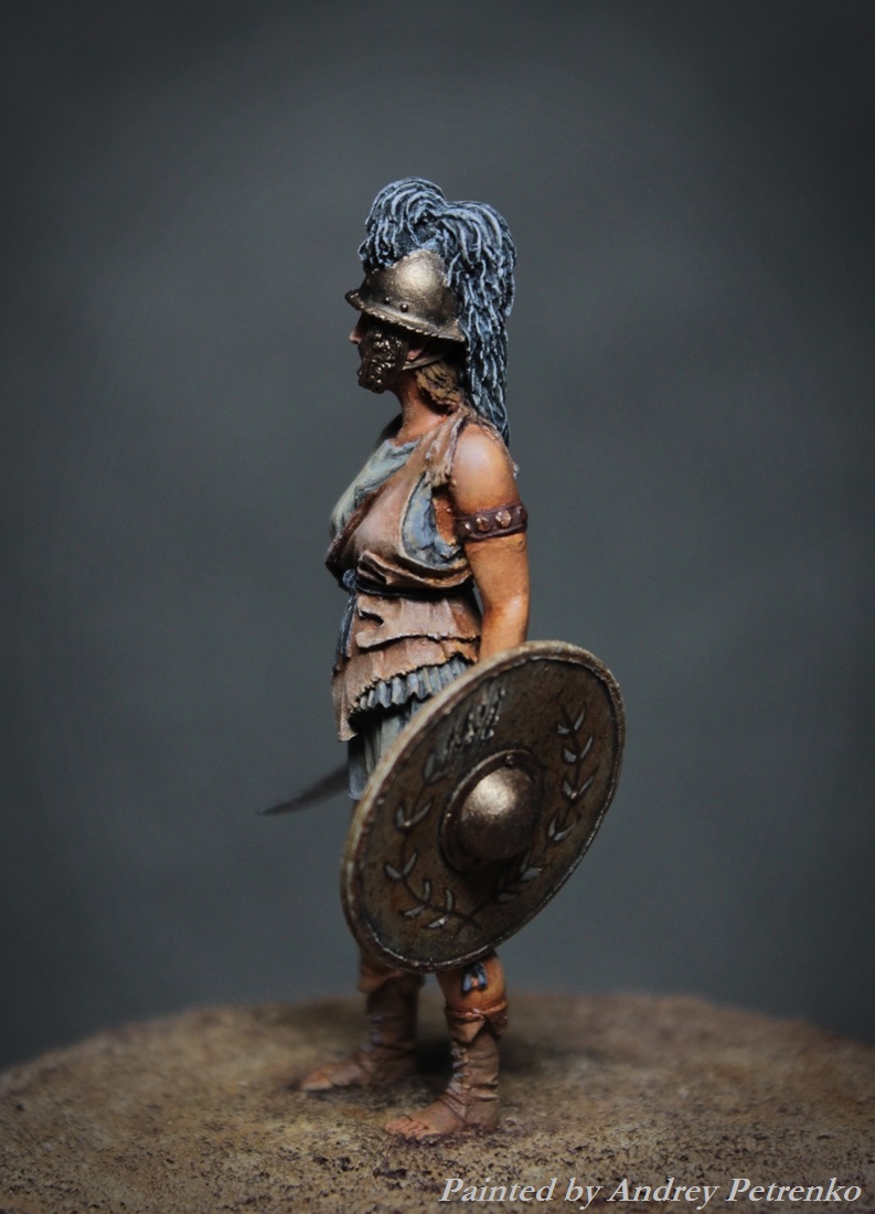 Моя свежая работа. И снова песок Колизея, на арене женщина бестиарий. Фигурка Mercury Models. 54мм. Роспись традиционно для меня темпера/масло.