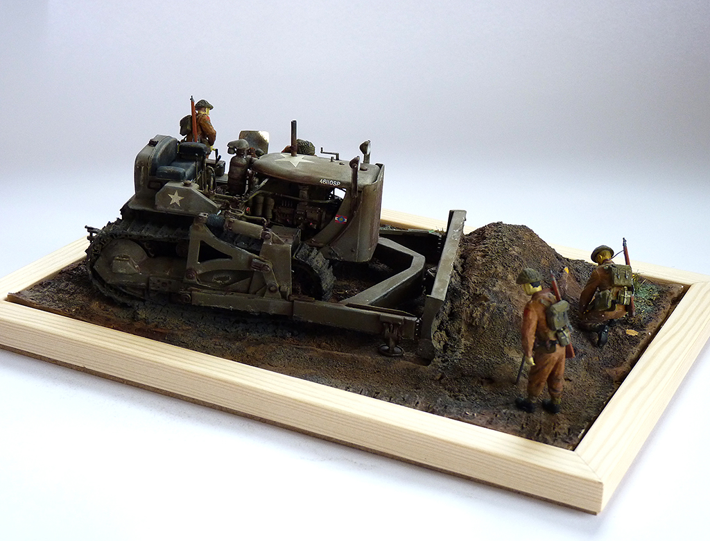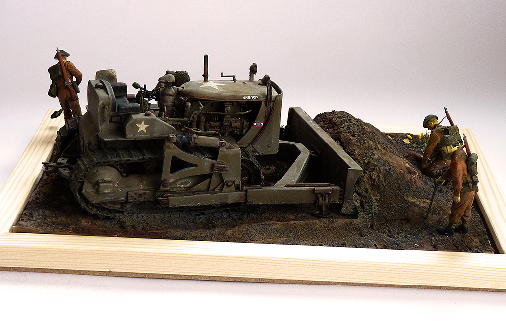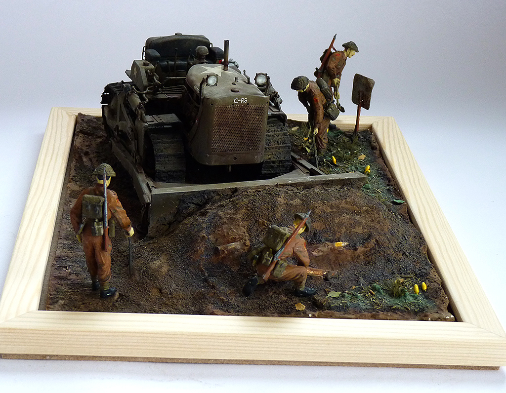 Доброго времени суток. Представляю на Ваш суд крайнюю диораму «Опасная находка». Идея такова: 1946 год. При расчистке земли под строительство бульдозер вывернул наружу снаряды, оставшиеся после недавней войны. Вызванные по тревоге саперы делают свое дело.