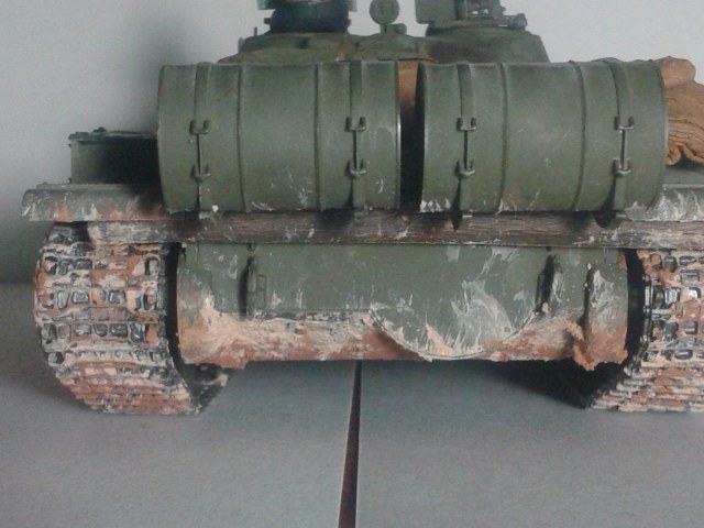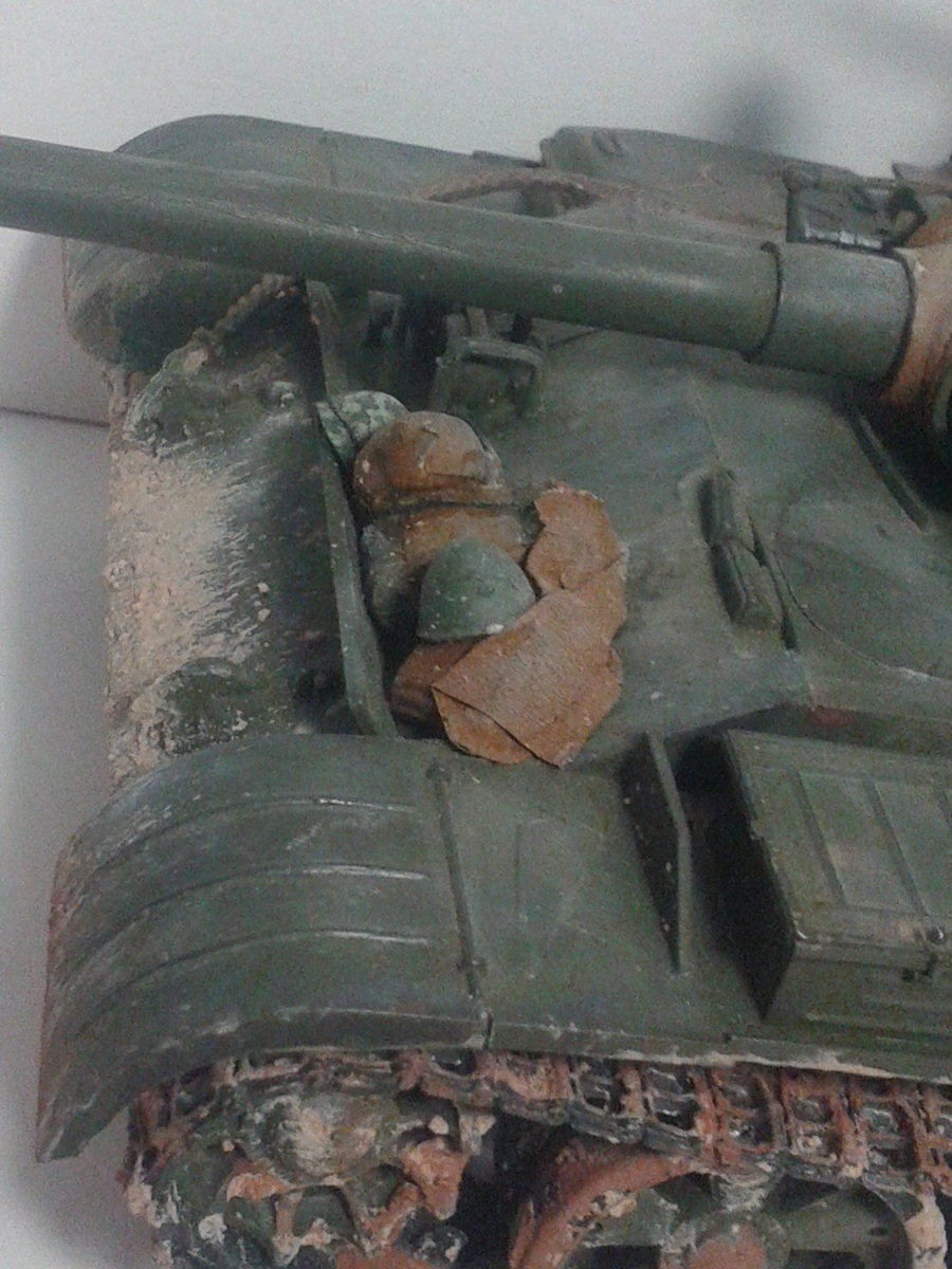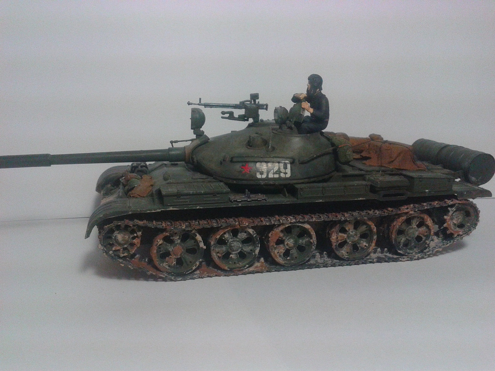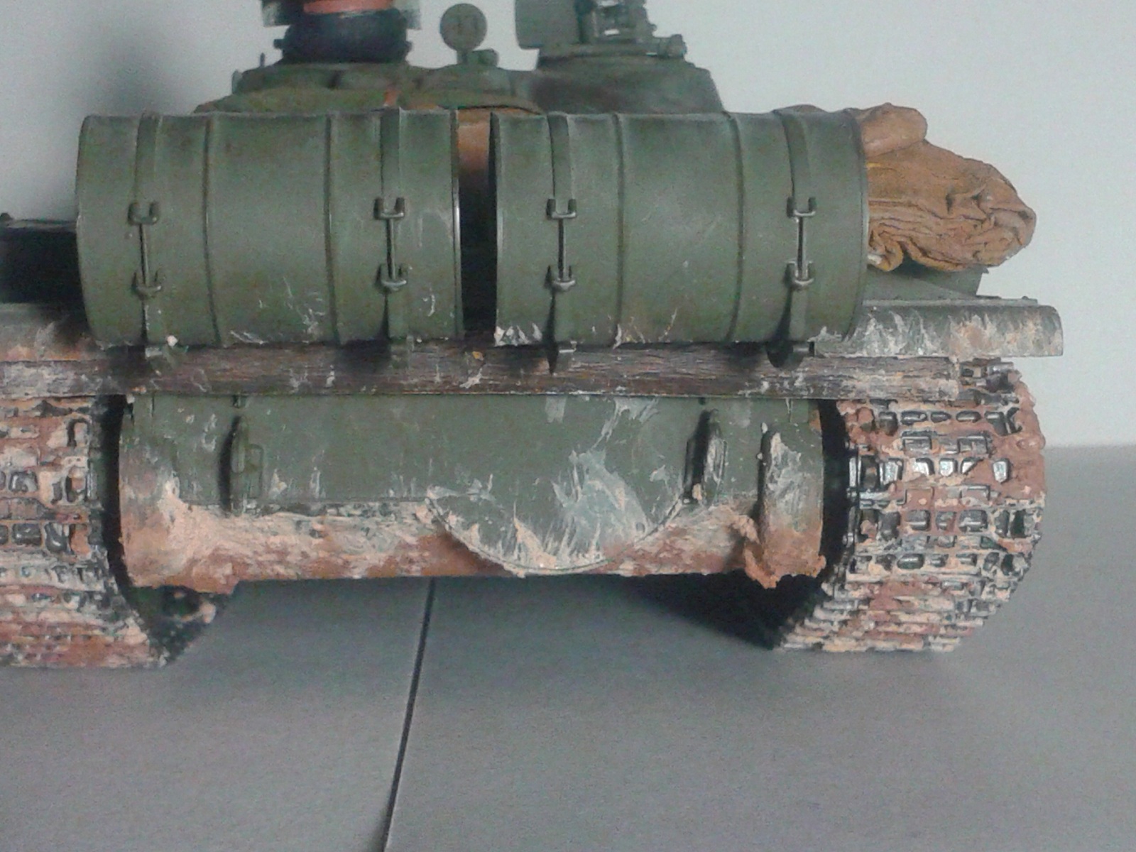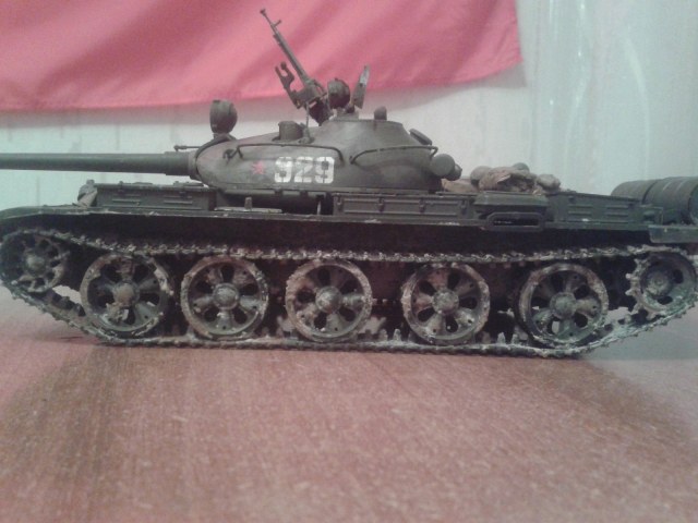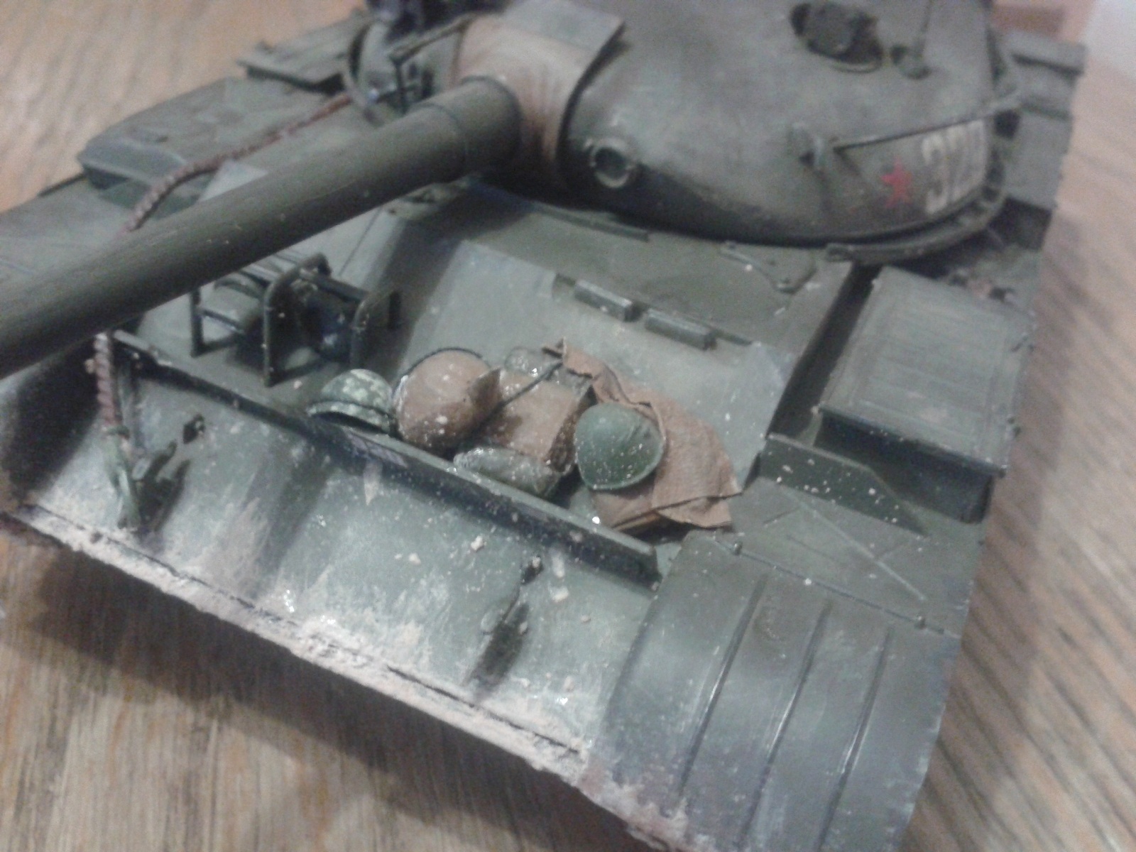 Всем привет! Вот, выложил фото исправленной модели Т-62А от Тамии. Убрал ящик и знамя, добавил на модель скатки из бумажных салфеток и снаряжение спереди. Добавил немного "свежей" грязи на траки, колёса и на нижние бронелисты. Разобрал корпус и как мог убрал щель спереди. Мне говорили про матчасть, мол хромает. Объясняю: я делал модель для возможной виньетки или диорамы на тему войны между СССР и США, в стиле игры "World in Conflict". Собираюсь в скором времени приобрести советских танкистов и десантников на броне от ICM, может, добавлю их в диораму. Фото несколько различаются, я выкладывал фото в разное время. Сначала выложил сс старым обвесом, потом решил его переделать и добавил купленных мною танкистов. Прошу вас, укажите мне на мои промахи и недочёты в модели, чтобы я смог их исправить. Спасибо!