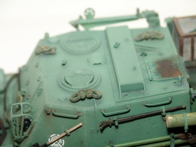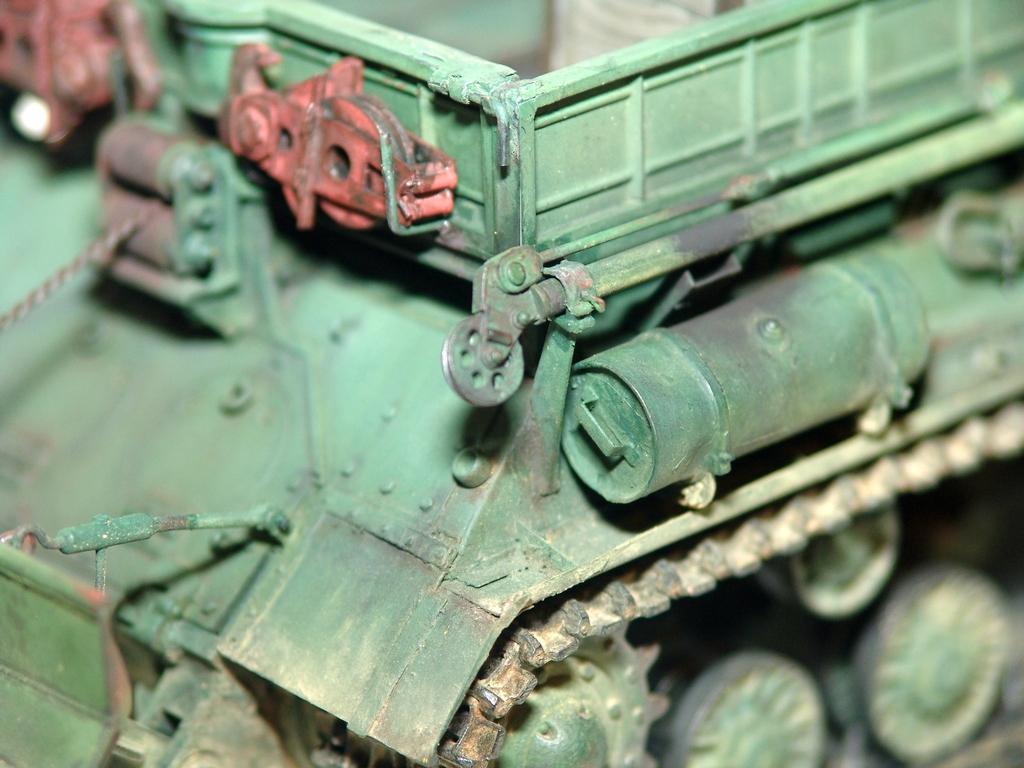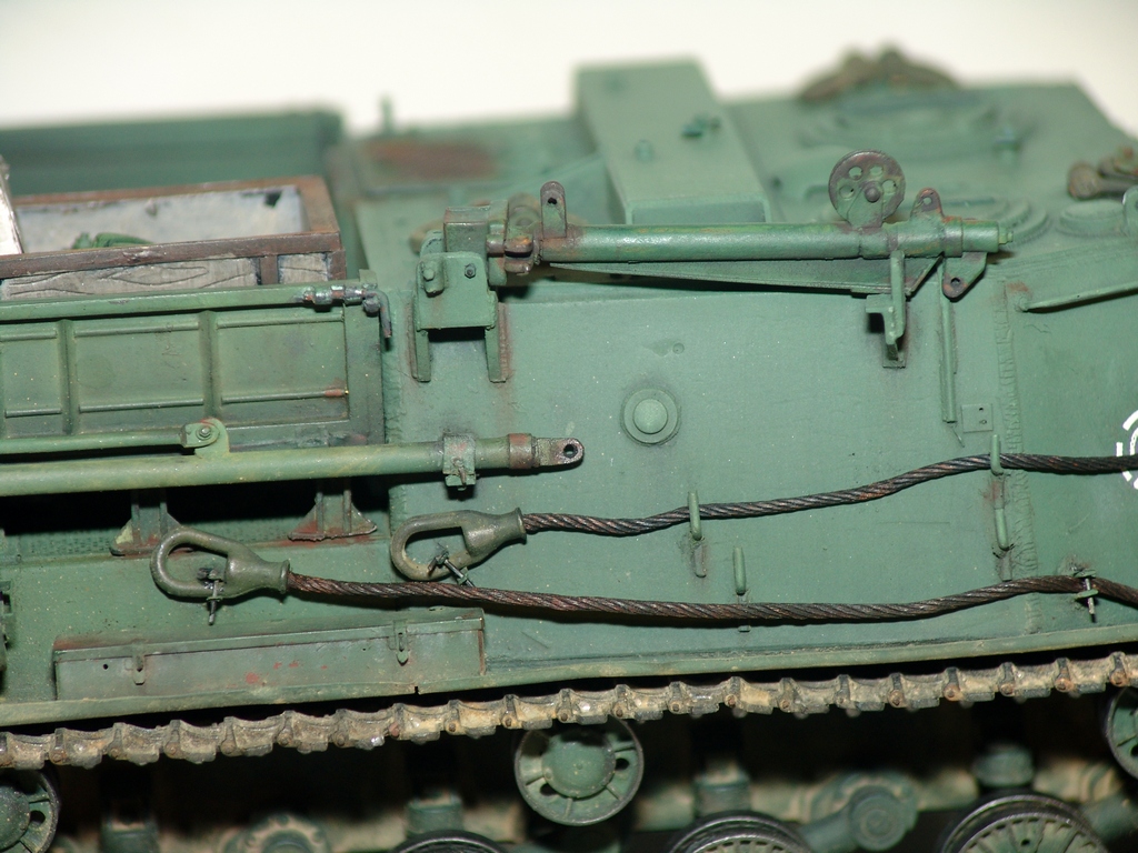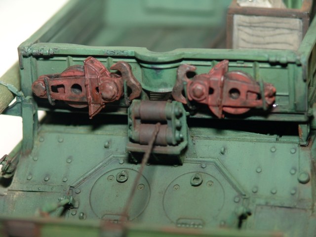 Блоки полиспаста я бы в красные(красно-коричневые) цвета не красил. Они так же как и корпус защитного цвета.