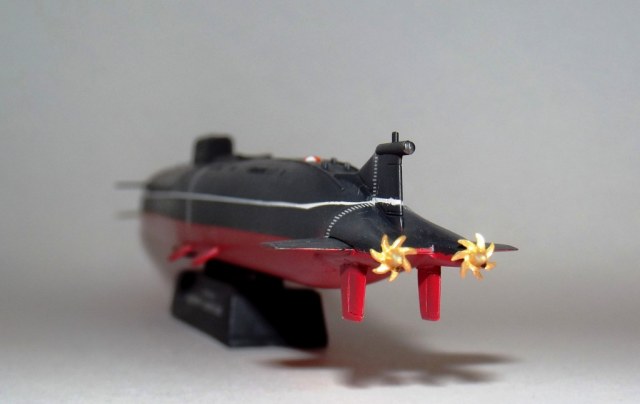 Всё же как модели ей отчаянно не хватает хоть что-то из выдвижных. Понятно, что когда она нырнула, то всё убрано. Но вот в под перископом смотрелась бы куда интереснее!(словечко "нырнула" жаргонное у командиров - сам слышал красивые команды вроде "Боцман, ныряй на 40 метров