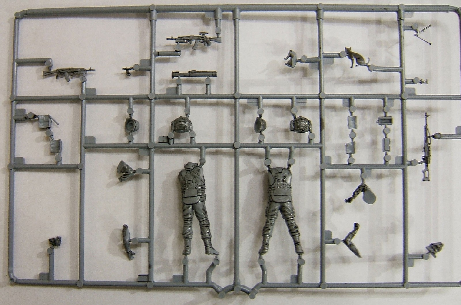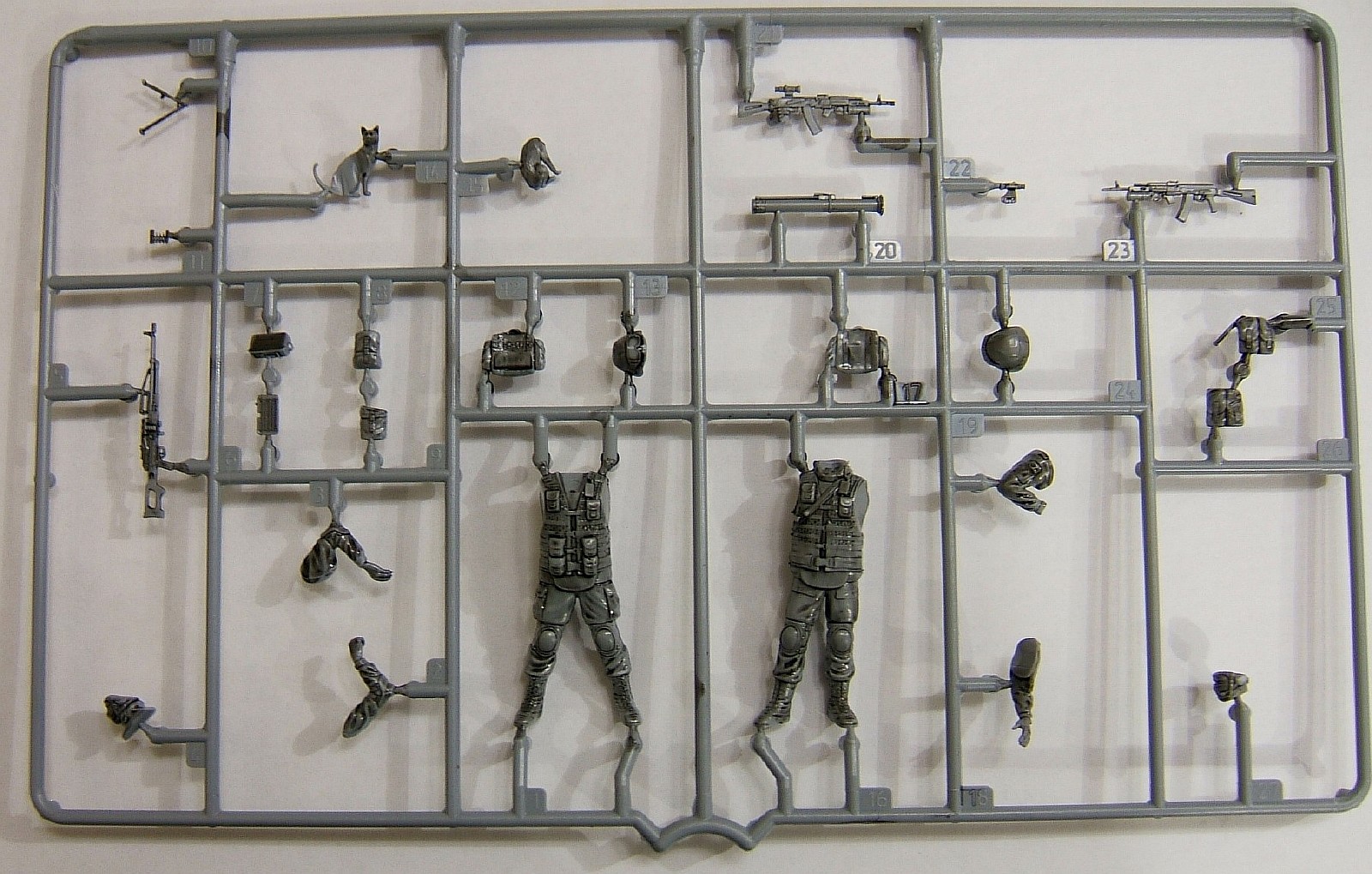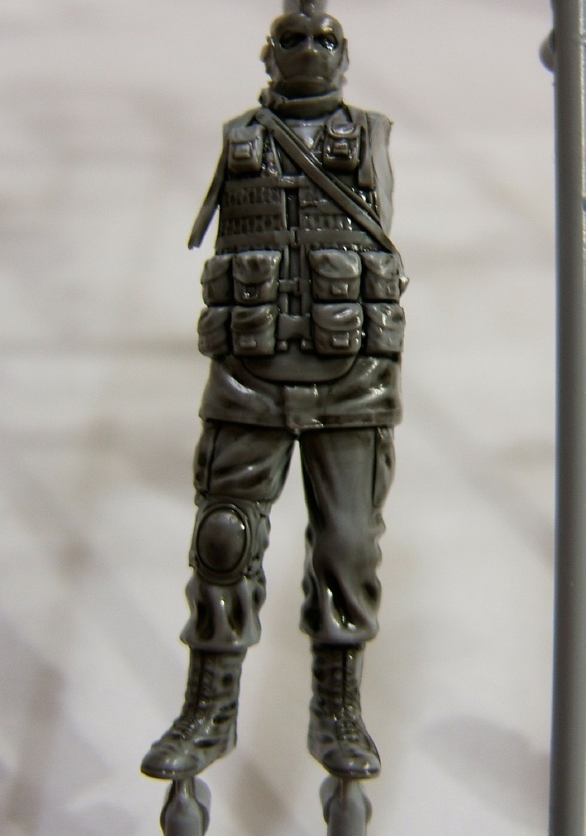 Облоя, утяжин, смещения пресс форм замечено не было. Прицелы данные отдельными деталями отлиты прекрасно, как и оружие. Кот - он также хорош как и оружие, присутствует рельеф шерсти, ноздри и рот также в наличии, хоть этого и не видно на фото. О детализации фигурок сказать сложно т.к. нес чем сравнить, но если рассматривать с набором "Советские десантники. Афганистан" то последние сделаны гораздо ажурнее, прекрасным сравнением являются берцы, если у десантников они прекрасно сделаны то у вежливых больше похожи на валенок с натянутой калошей. Цена набора составила 480 деревянных.