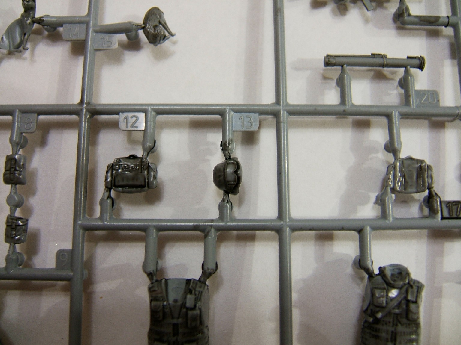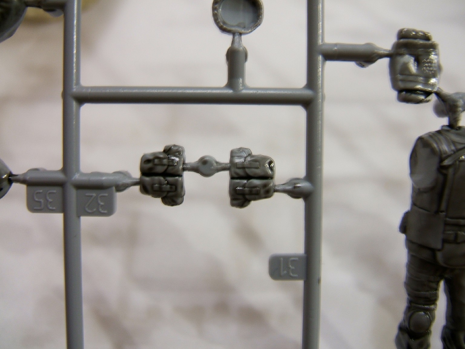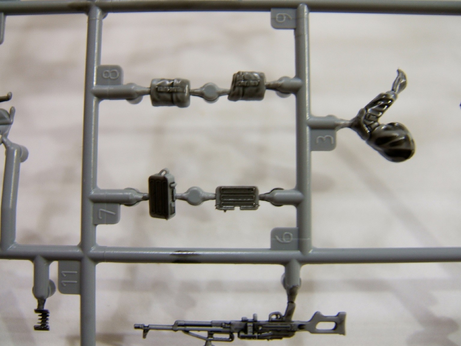 А если серьёзно, про обувь уже было сказано, ноги пулемётчика вообще не касаемся, их просто нужно отпилить. Фигурки в целом "мыльно" смотрятся, только головы хороши. С руками непонятка, при всей пышности формы, рукава идут в натяг. Вот подержав собранные фигурки в руках, не могу я выдавить из себя ничего положительного по поводу них. Вот амуниция это да, это огонь, все остальное в ведро.