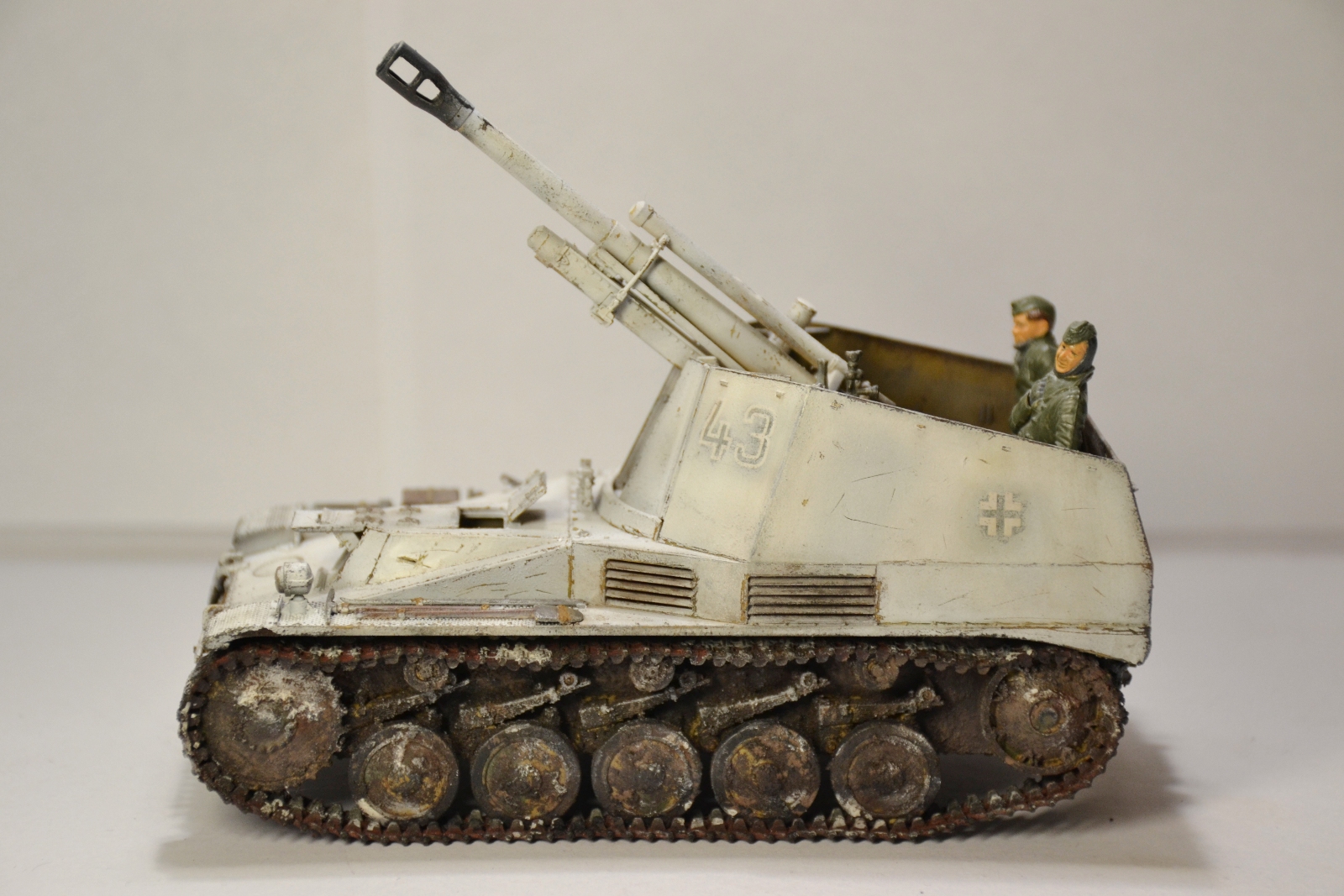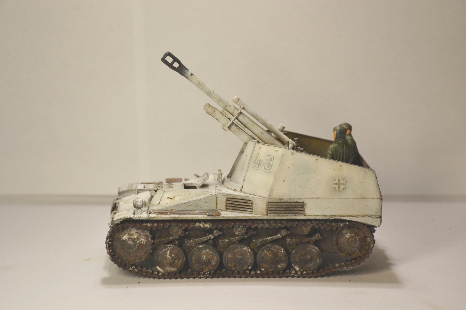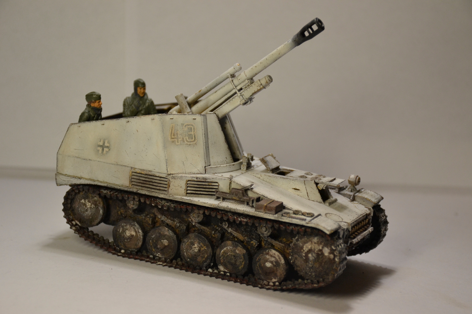 "....тут надо про прототип хотя бы немного прочитать. Если бы Вы это сделали, то прекрасно знали бы, что эта самоходка сделана на базе Панцера 2, корпус которого в длину составляет всего лишь 4м 81см (а/м Волга ГАЗ 31029 длиннее!), что в 35-м масштабе как раз и составляет 13,7см."