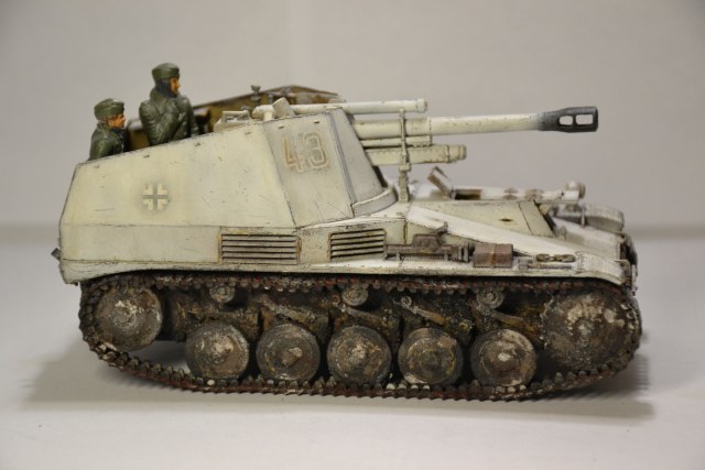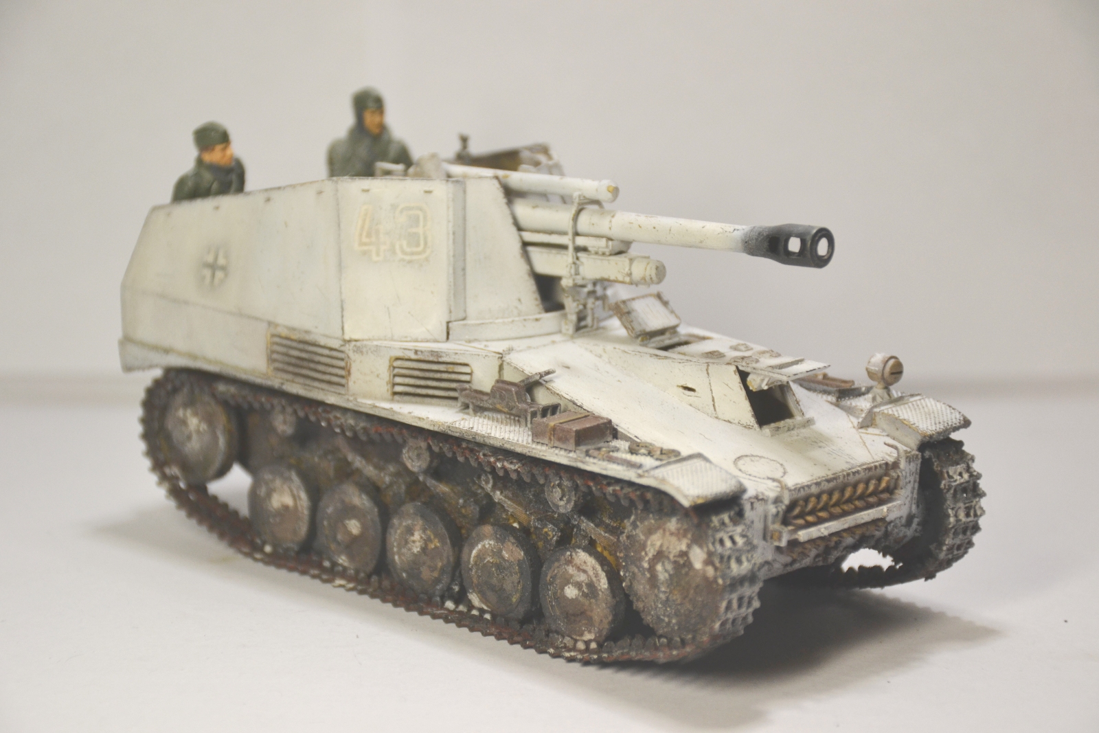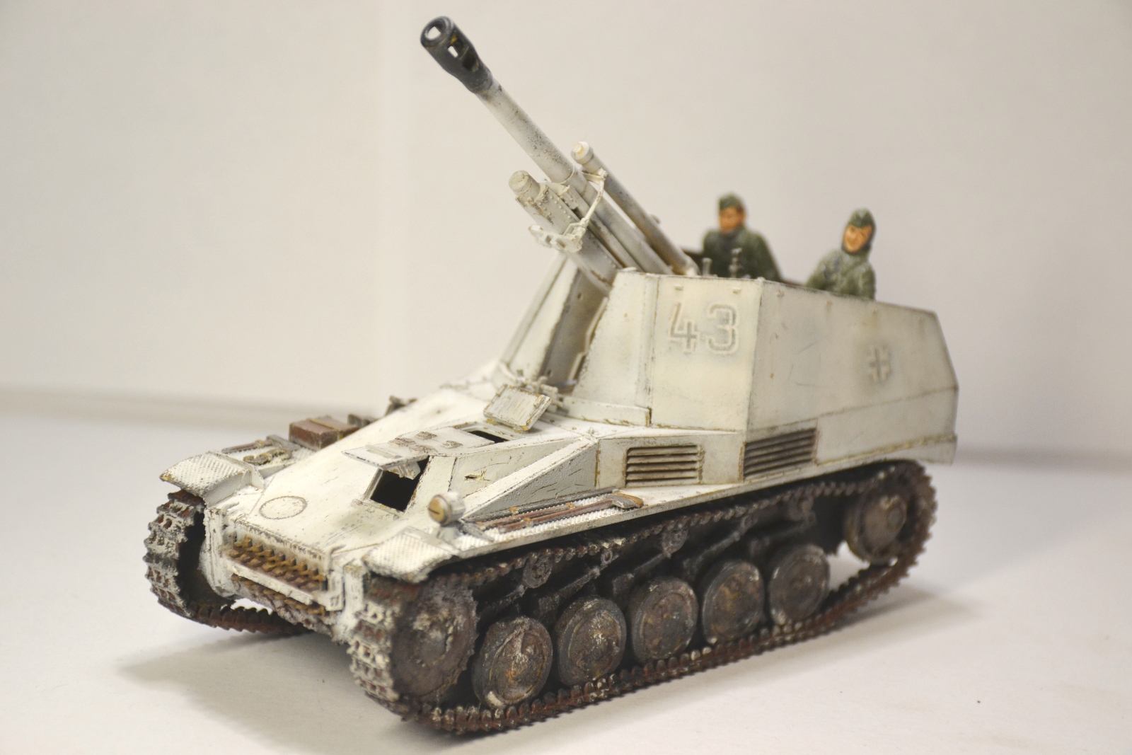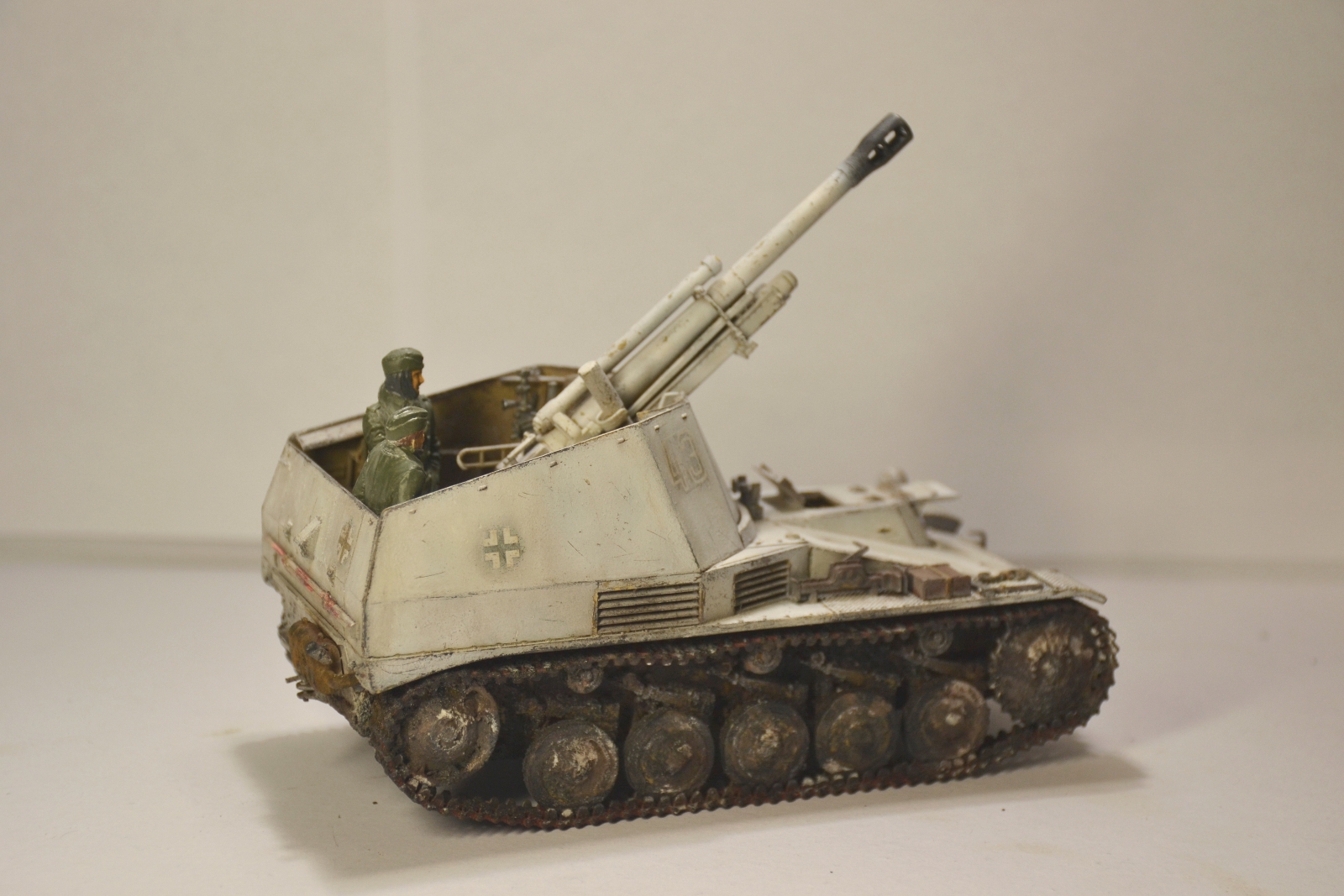 "....тут надо про прототип хотя бы немного прочитать. Если бы Вы это сделали, то прекрасно знали бы, что эта самоходка сделана на базе Панцера 2, корпус которого в длину составляет всего лишь 4м 81см (а/м Волга ГАЗ 31029 длиннее!), что в 35-м масштабе как раз и составляет 13,7см."