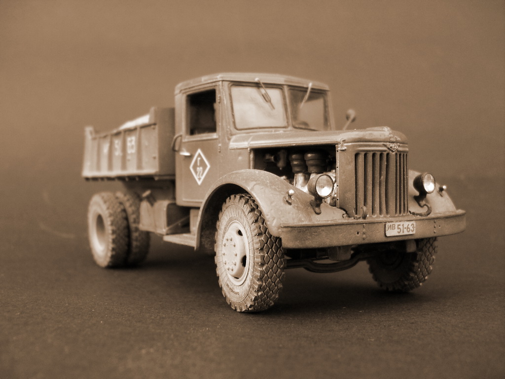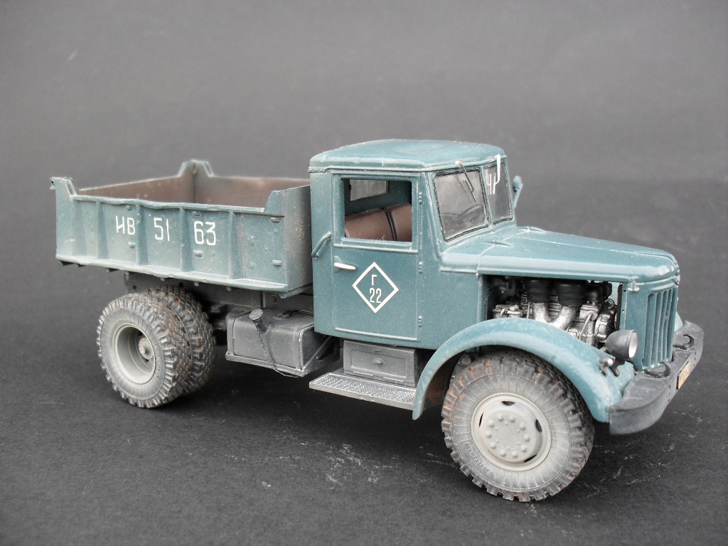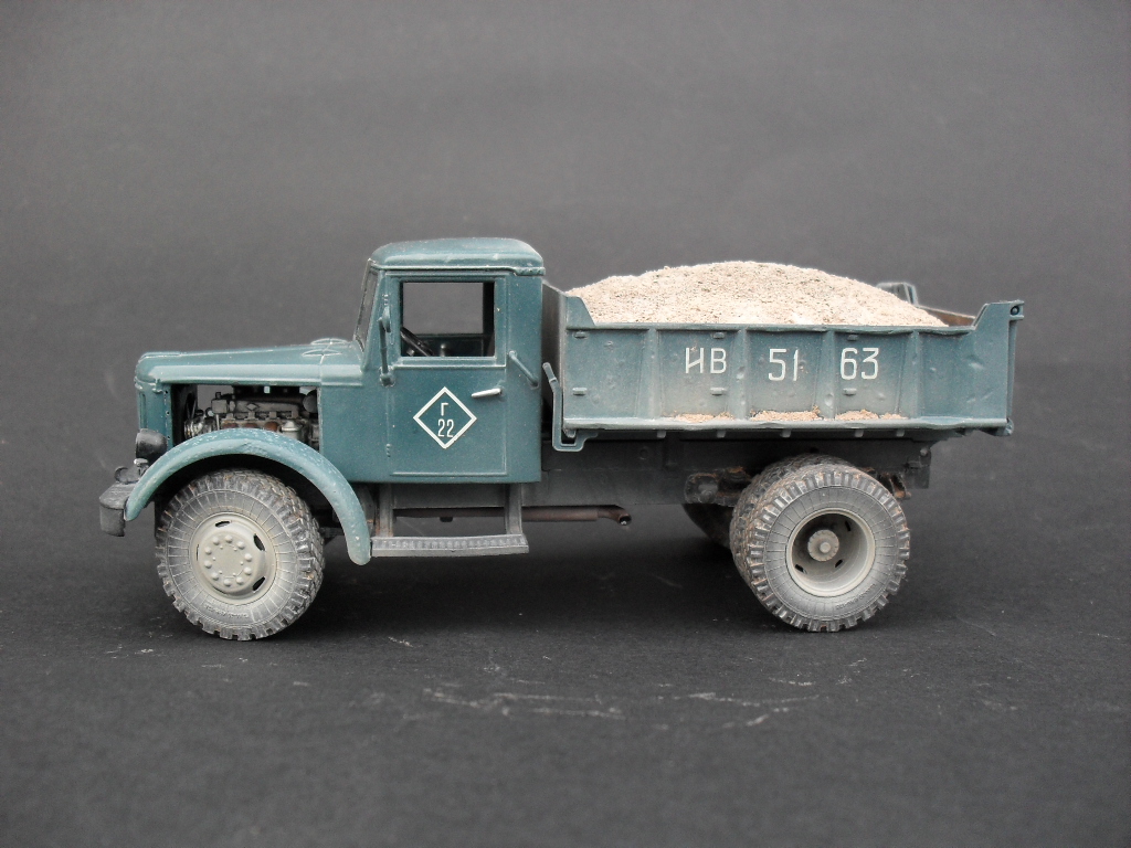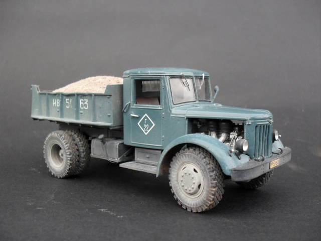 Да,МАуЗер достойный и двигатель всё верно двухтактный дизель ЯАЗ-204.Резина в комплекте более карьерная ( имхо).Из далёкого детства помню такие у нас ходили,только цвет выцвевшей хаки.А шума и дыма от их было огогою.Заканчиваю собирать такойже,скоро выложу.