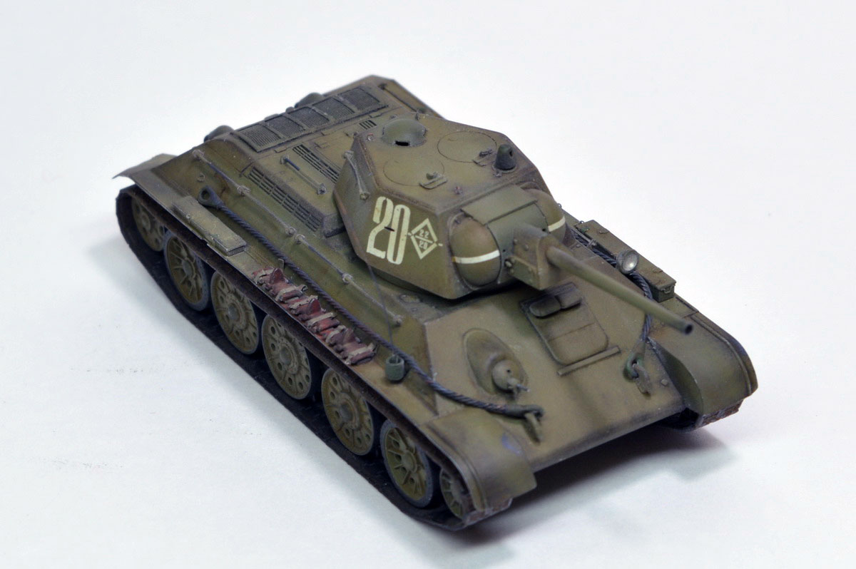 некоторое несоответствие выбранному прототипу,(Опорные катки должны быть штампованными, ну и доп. баки круглые, как на Т-34-85) но как работа - на ОТЛИЧНО!!! смотрится очень живо!!! КЛАСС!!