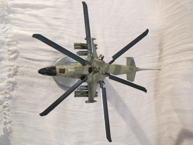 Модель российского ударного вертолета Ка-50 "Чёрная акула" от производителя "Звезда" в масштабе 1:72. Собирал модель год назад, фотографии делал сейчас. За это время просмотрел множество информационных порталов, в том числе и данный сайт. Честно говоря, после увиденного выкладывать эту работу неловко, поскольку вижу множество ошибок. Но тем не менее хочется узнать и мнение товарищей по интересу. При сборке использовал клей tamiya, краски фирм "Звезда" и "АКАН". Работал аэрографом BD-130 k и кистью. Не грунтовал, не шпаклевал. Лаками не покрывал. В связи с этим вижу недостатки полученной модели, хотя очень старался. Сейчас в процессе сборки Ка-52. Хочу заниматься стендовым моделизмом и далее и, конечно, более качественно. Поэтому и выставляю на ваш суд данную модель. Спасибо за внимание.