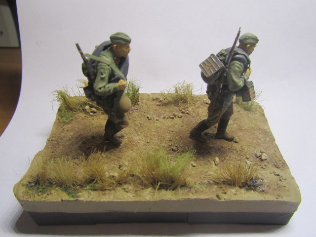 Два бойца идут на фронт по пыльной дороге! Один повредил руку в результате обстрела. Не судите строго первая диорамка после 7 летнего перерыва)