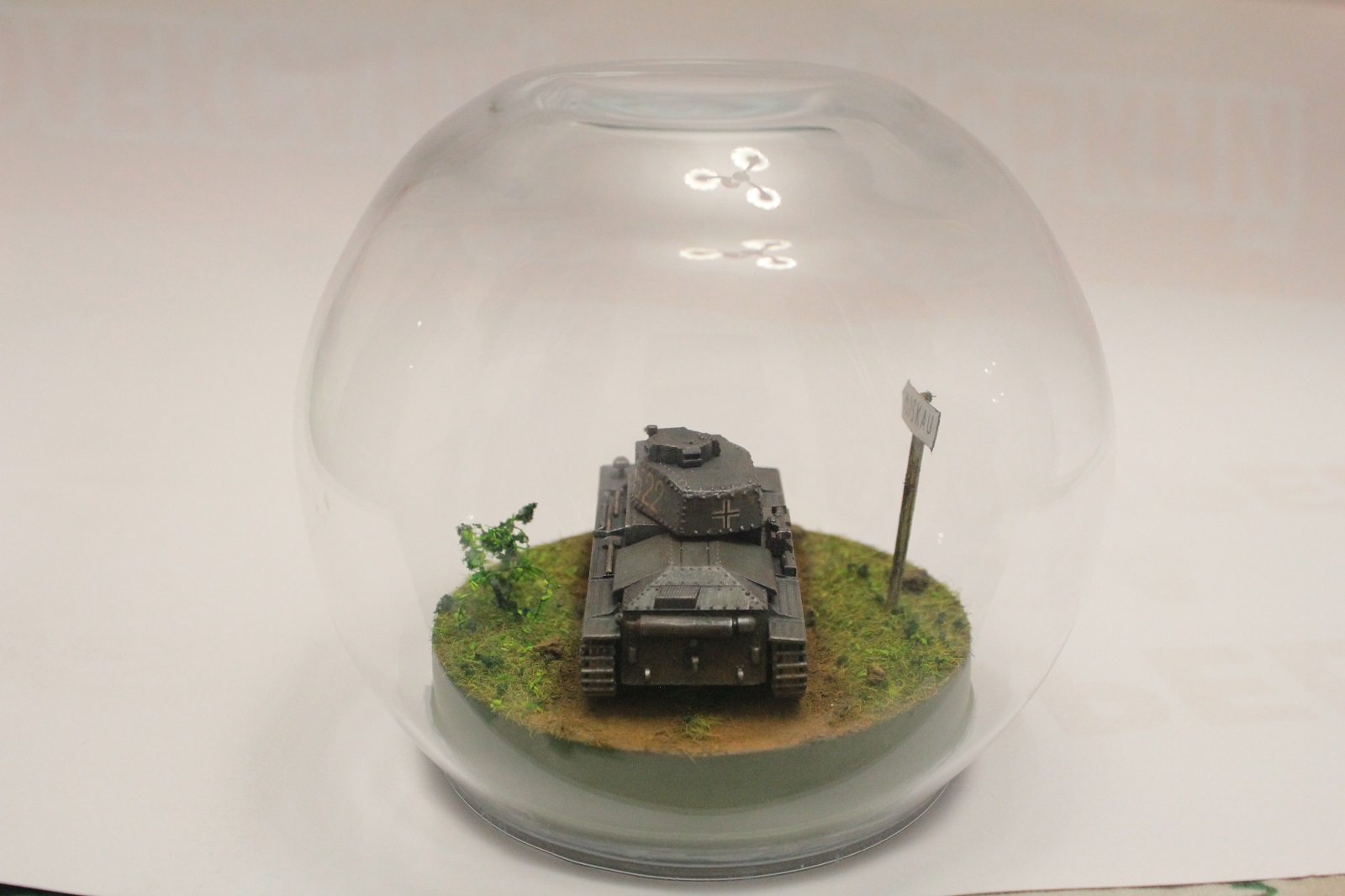 прикольный пепелац..сам хочу сделать шар со негом..хрен знает как они называются..потрясёшь там снег идёт..танк есть 100 масштаба пазик 2 от звезды...но дочка шар не даёт..может в фикспрайс опять завезут тогда себе куплю и будет очень по новогоднему..танк у меня эмалью крашеный надеюсь от глицерина или что там не облезет
