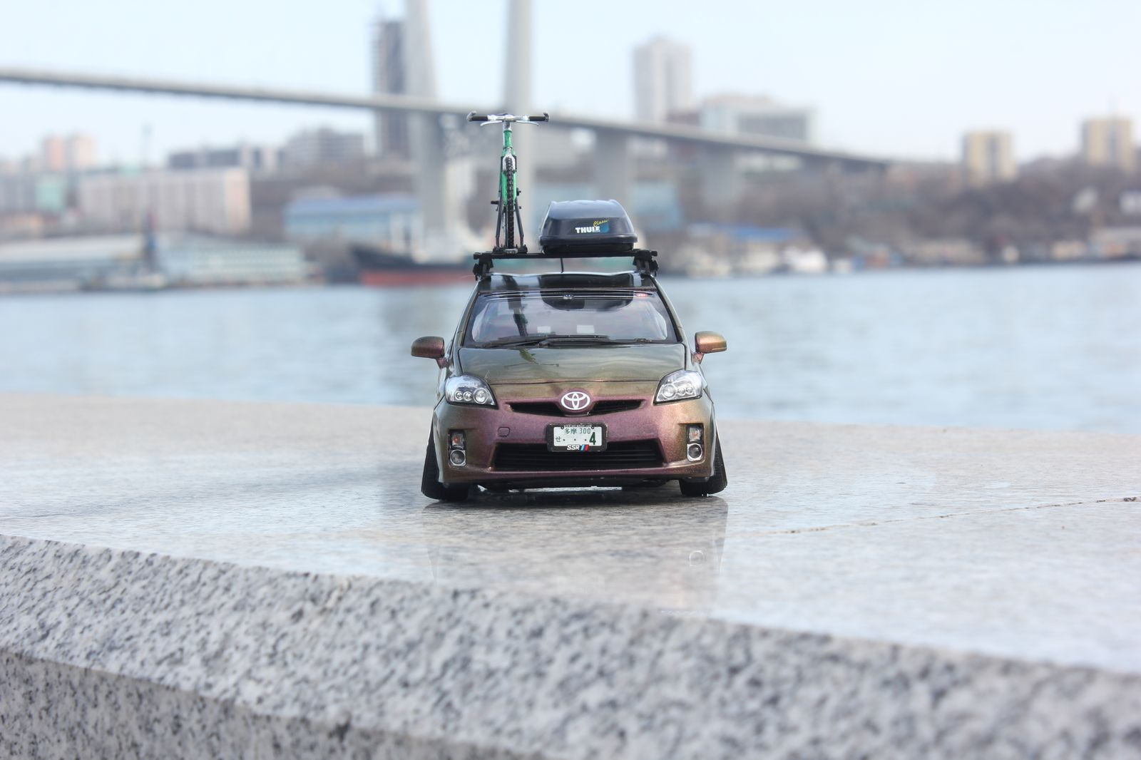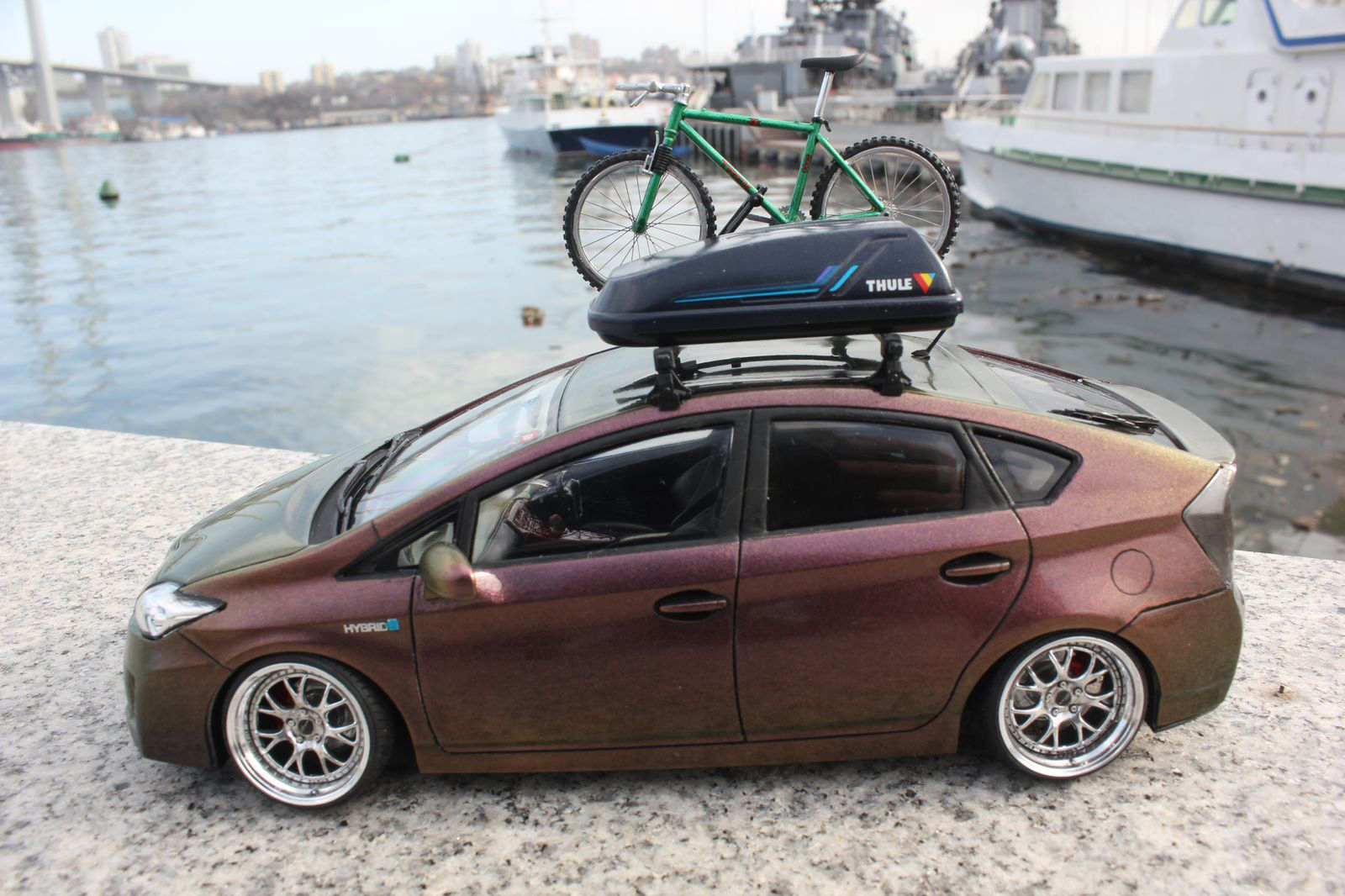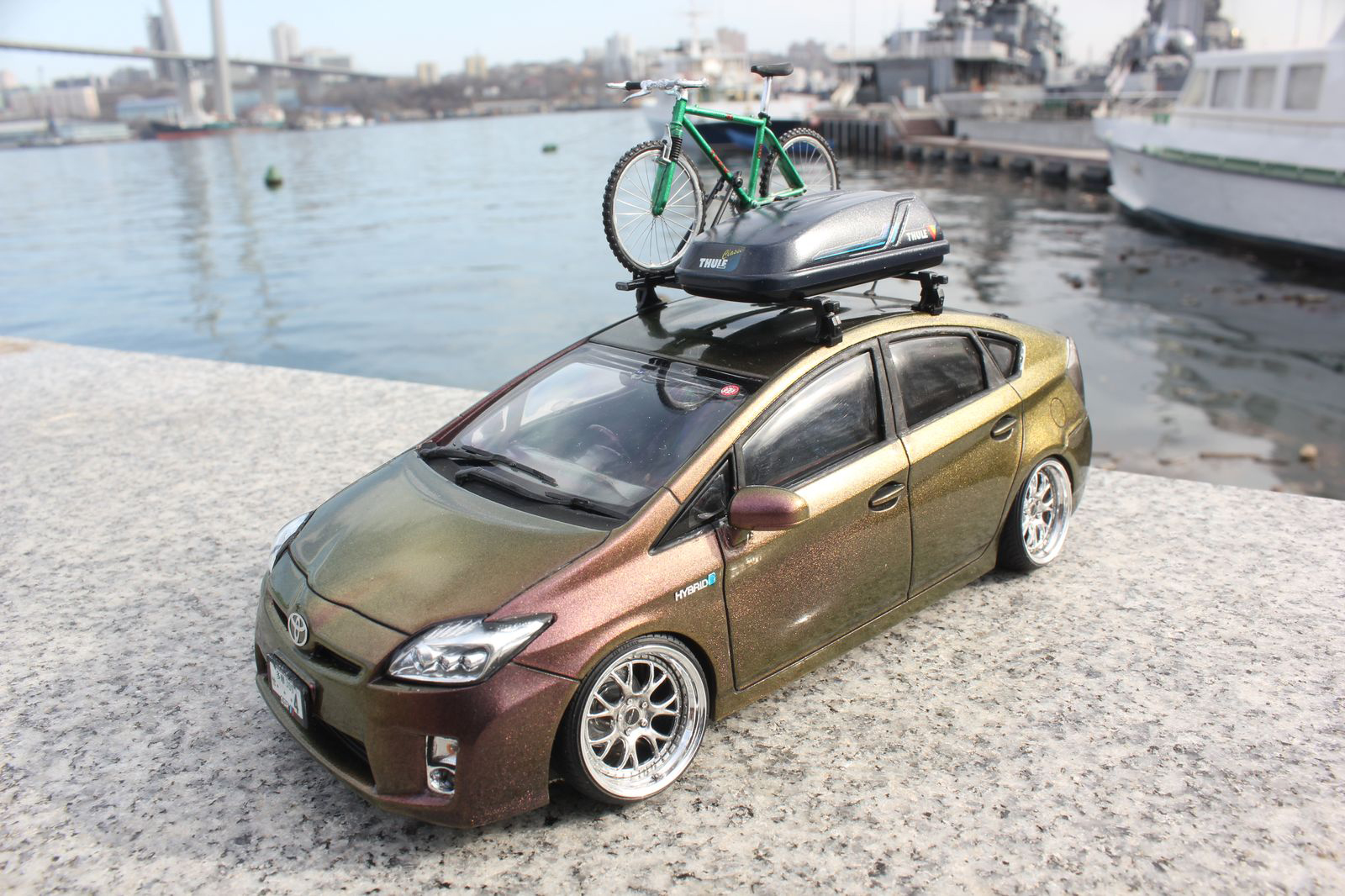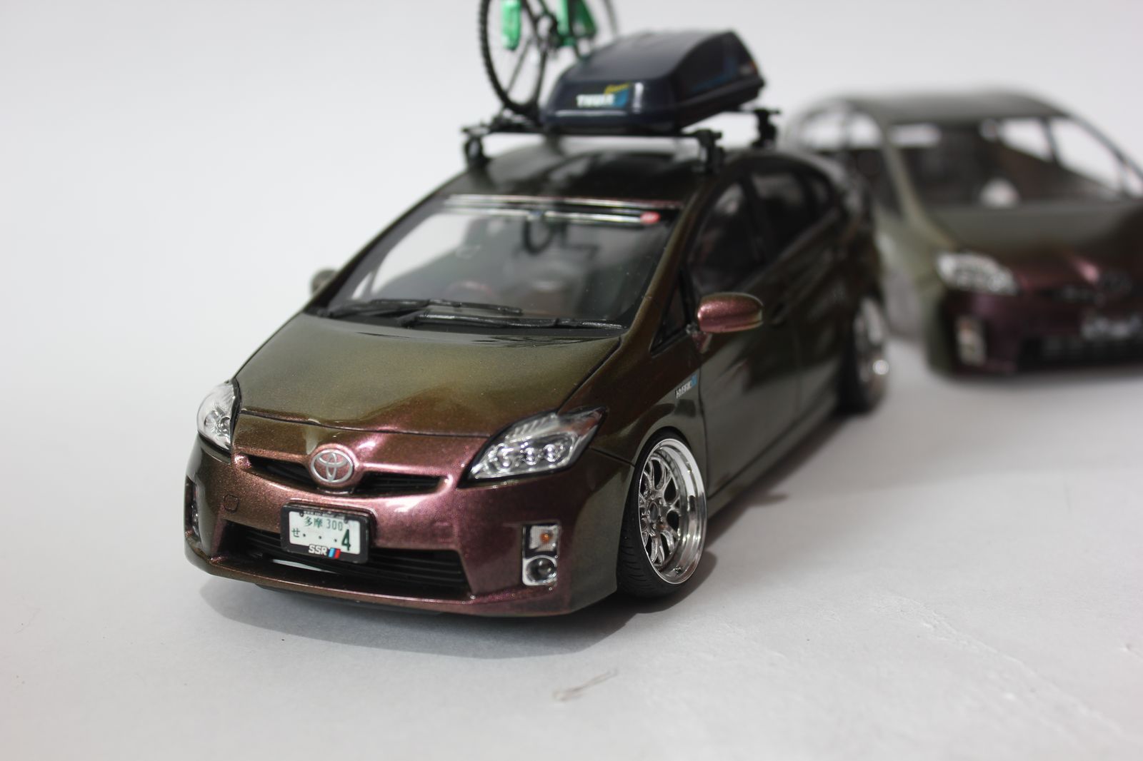 Всем добра! Хочу представить свой очередной автомобиль. Это восстановленный Toyota Prius в стиле Stance. Диски SSR19`, цвет хамелеон Tamiya Ps-47 и дополнительным набором на крышу. Сверху залил 2К лаком! Цвет в живую просто шикарен!