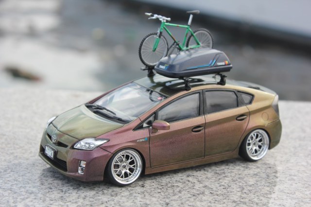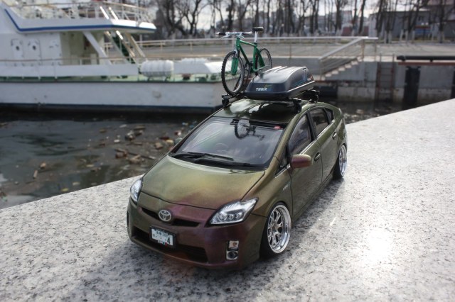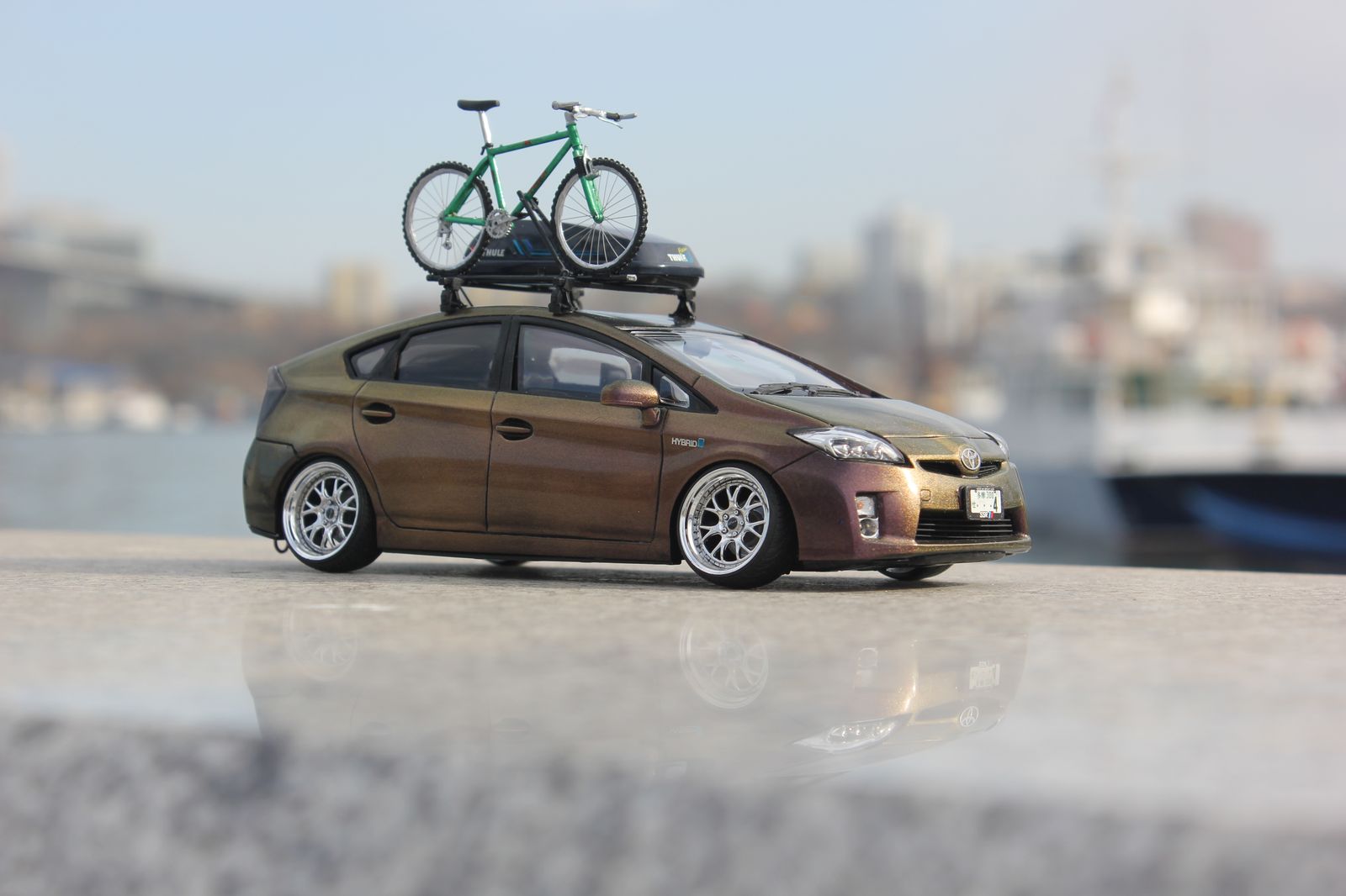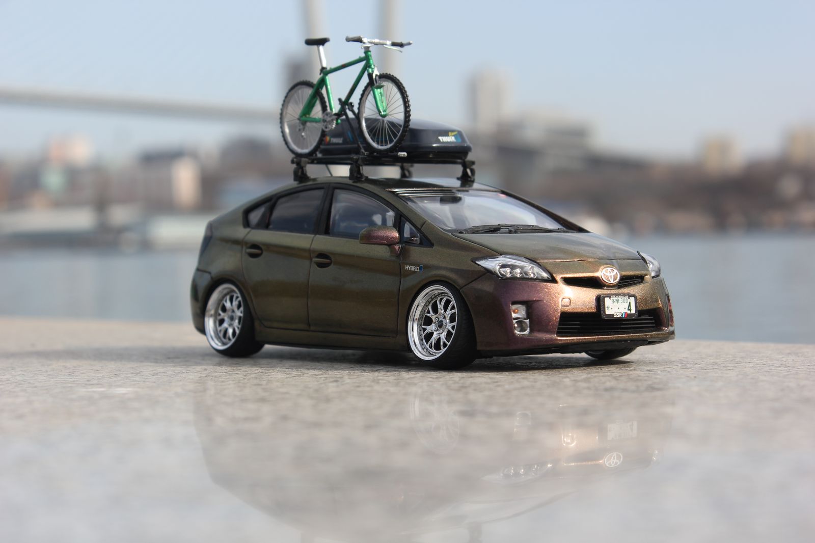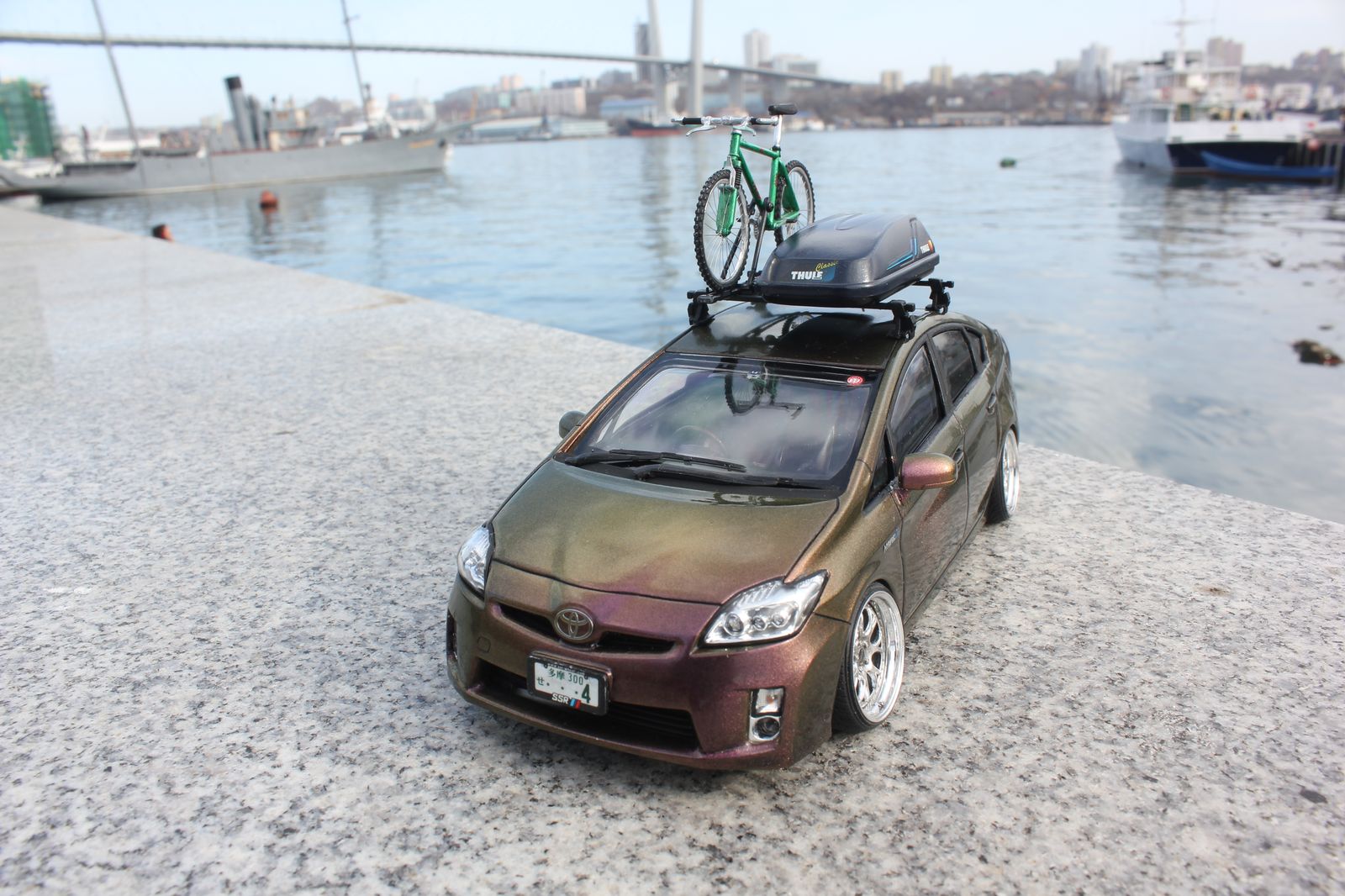 Всем добра! Хочу представить свой очередной автомобиль. Это восстановленный Toyota Prius в стиле Stance. Диски SSR19`, цвет хамелеон Tamiya Ps-47 и дополнительным набором на крышу. Сверху залил 2К лаком! Цвет в живую просто шикарен!
