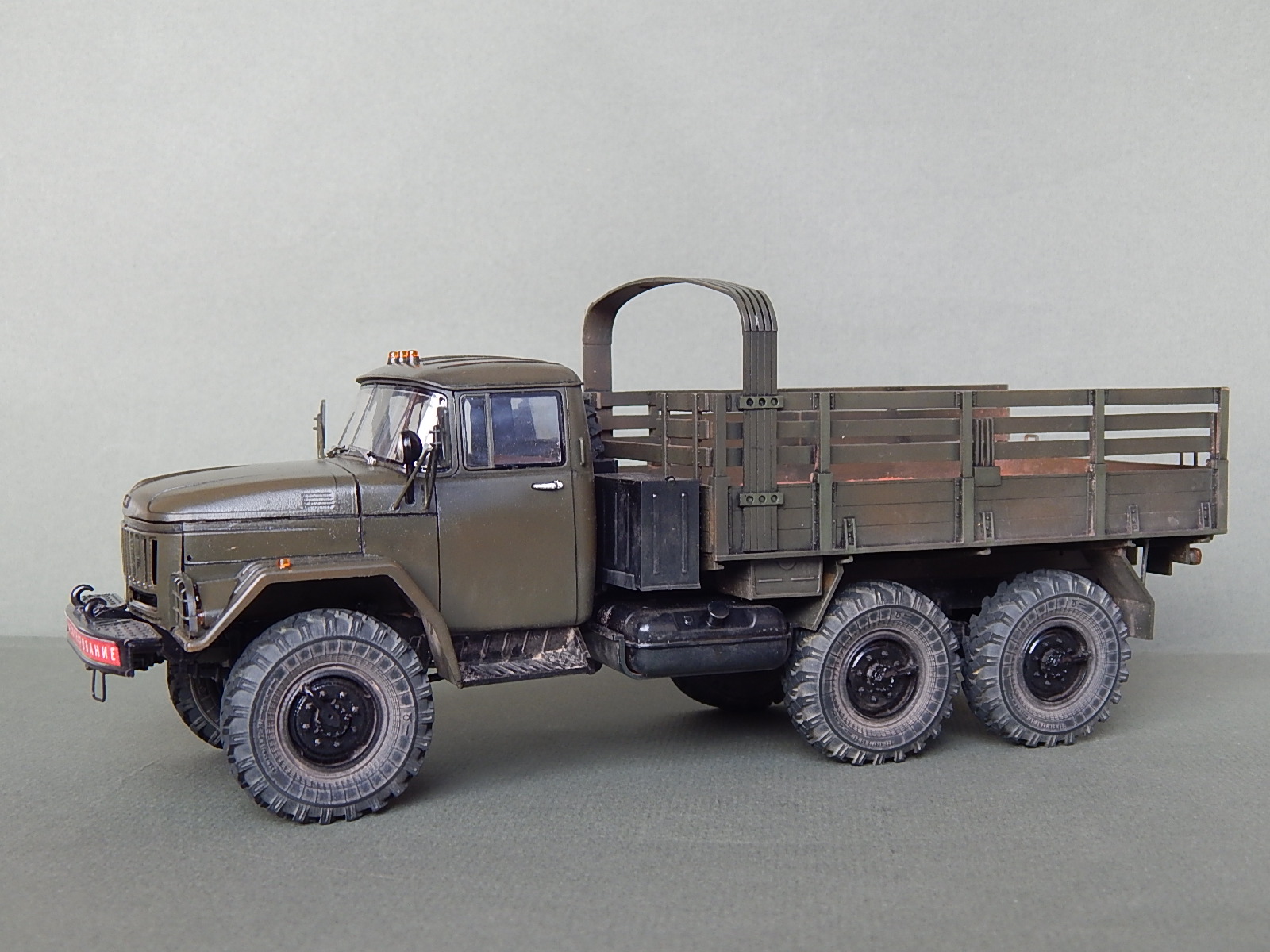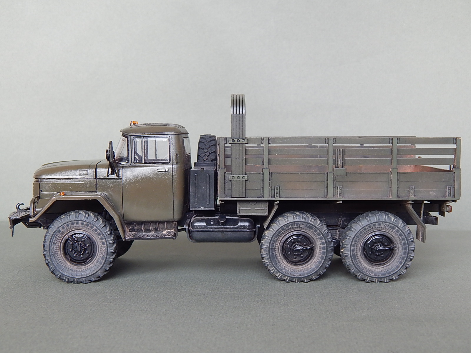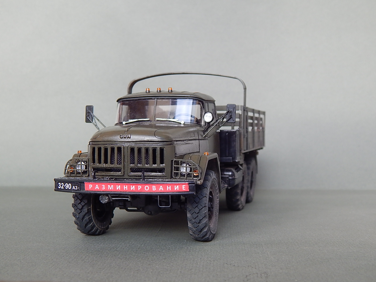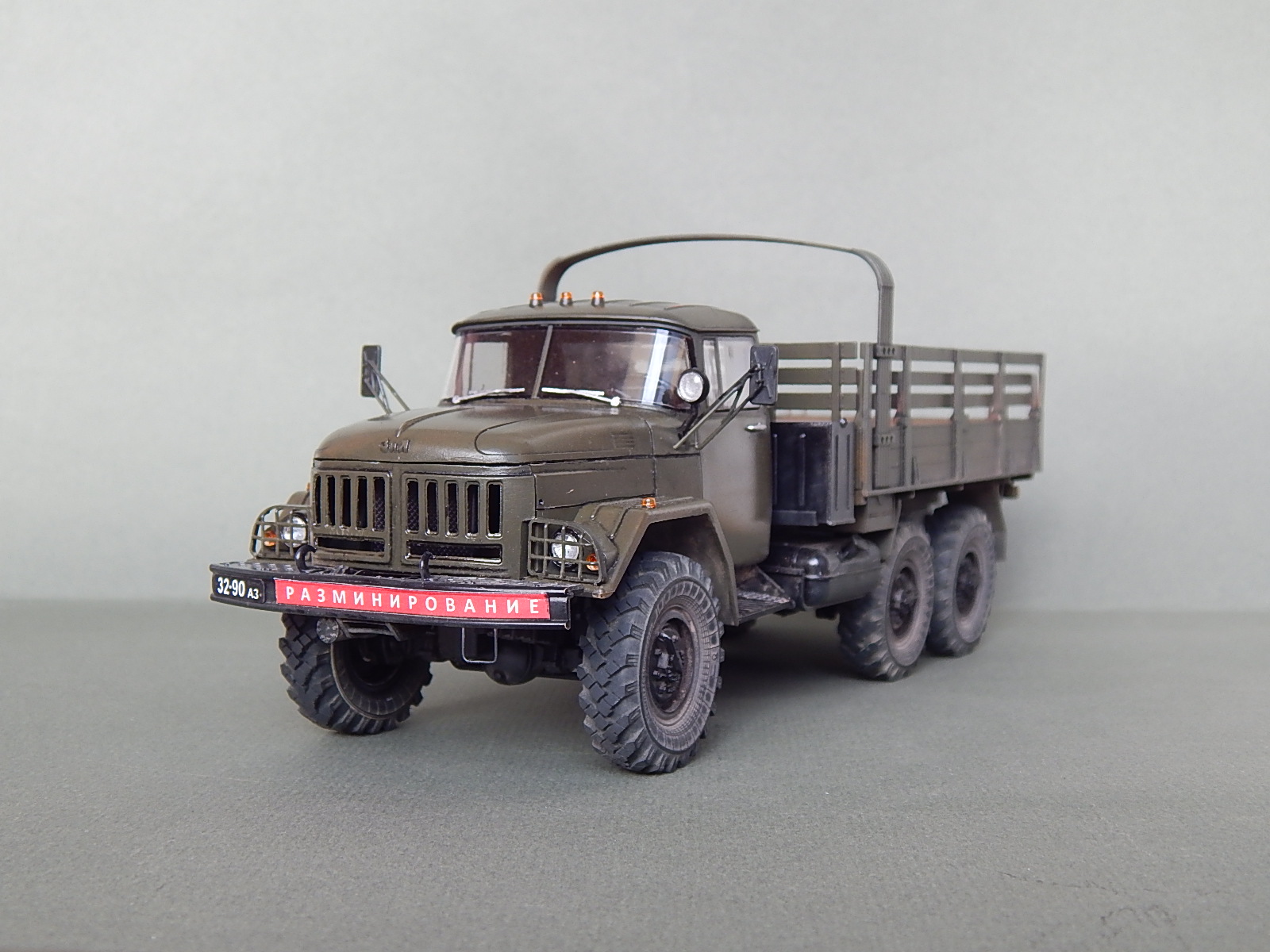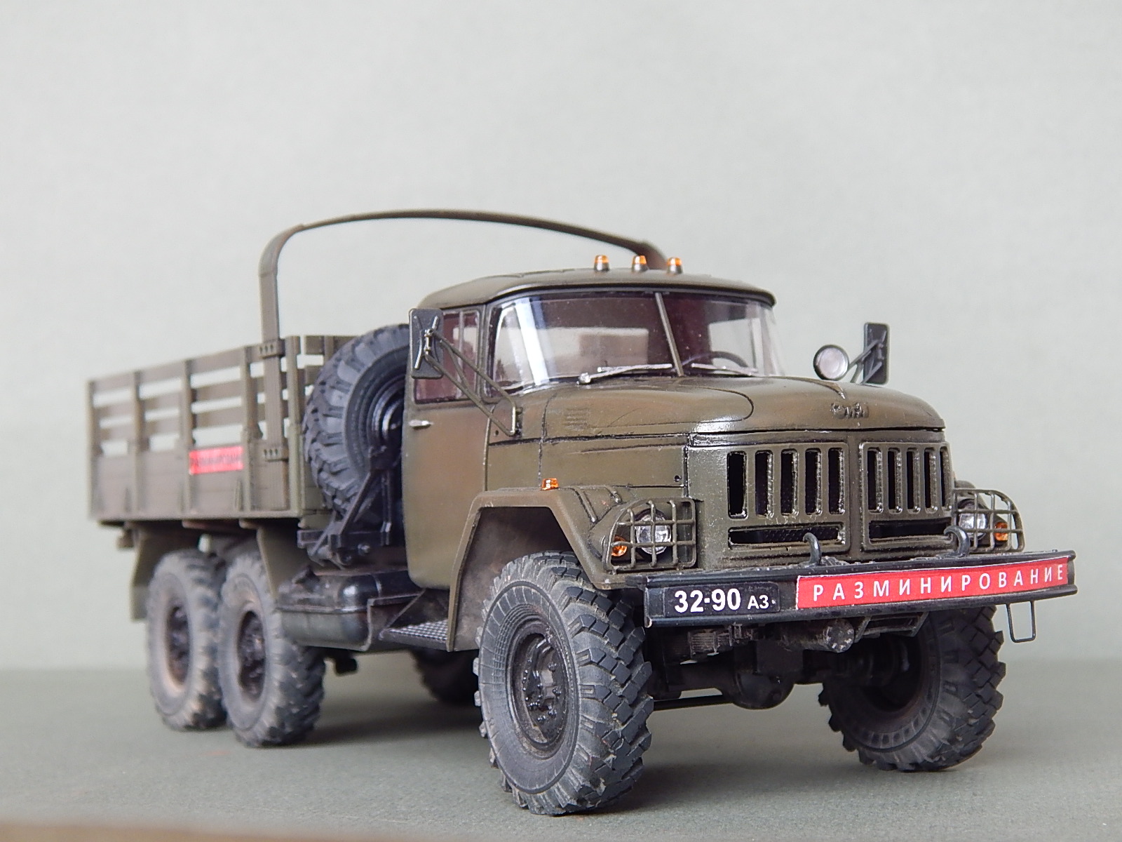 Красивая работа! Но надо было имитировать песок в кузове. Когда-то видел фильм о разминировании. Там в кузове зилка был толстый слой влажного песка. Снаряды и прочую взрывчатку буквально впечатывали в песочек.