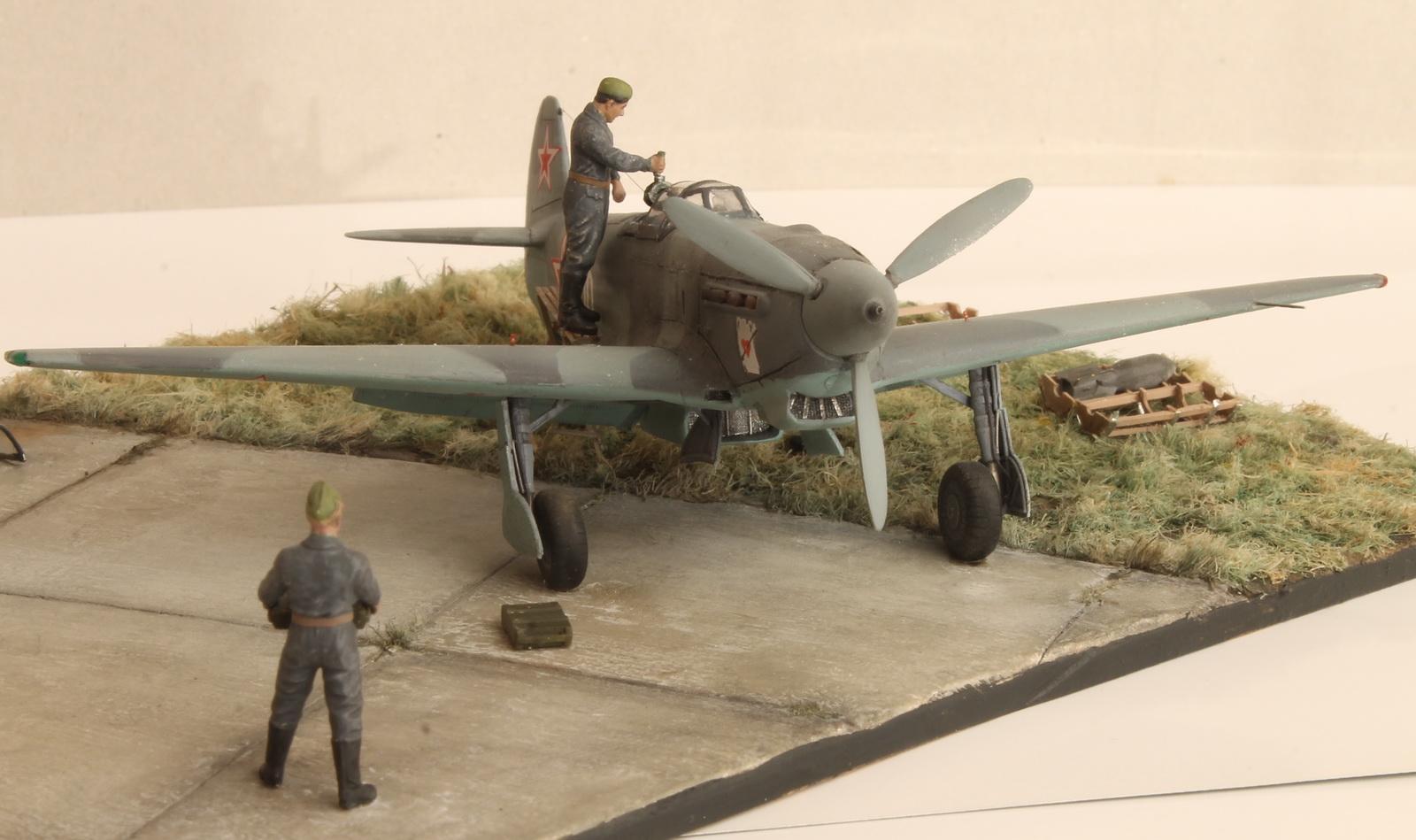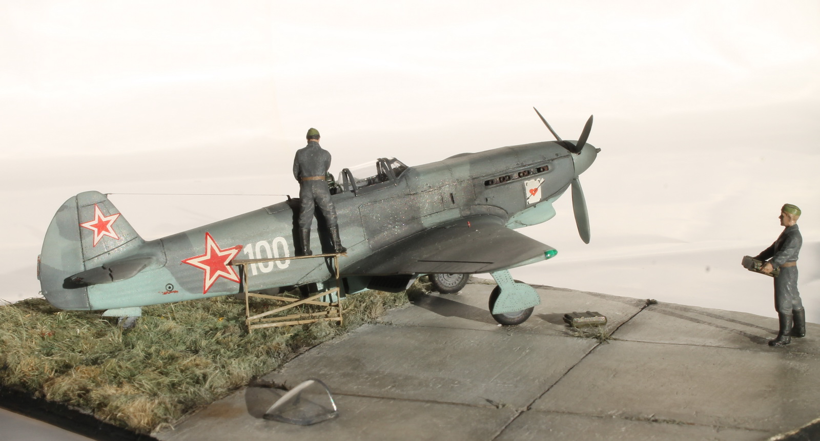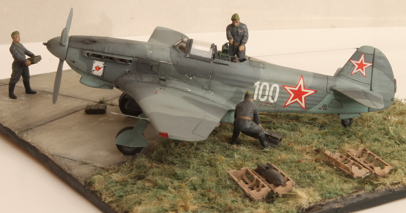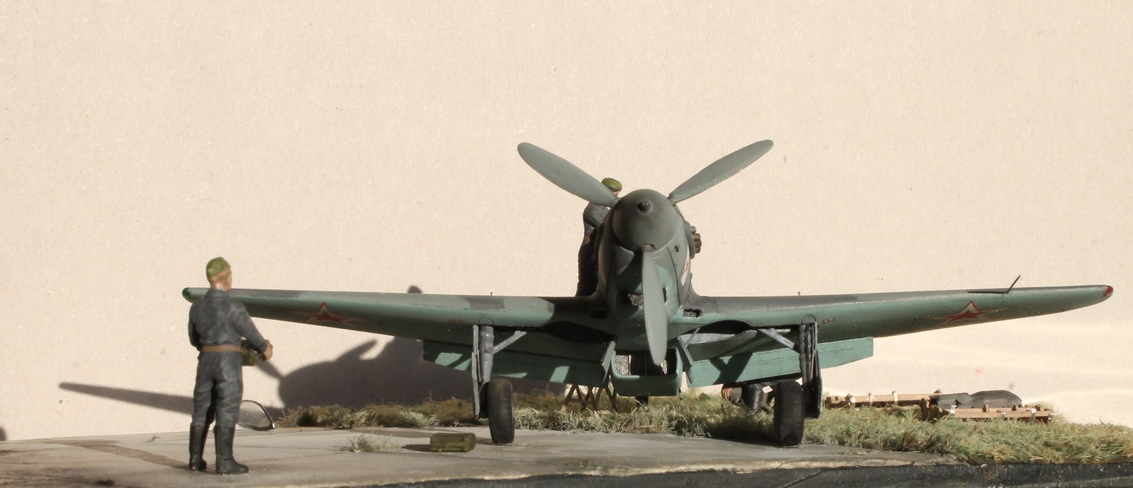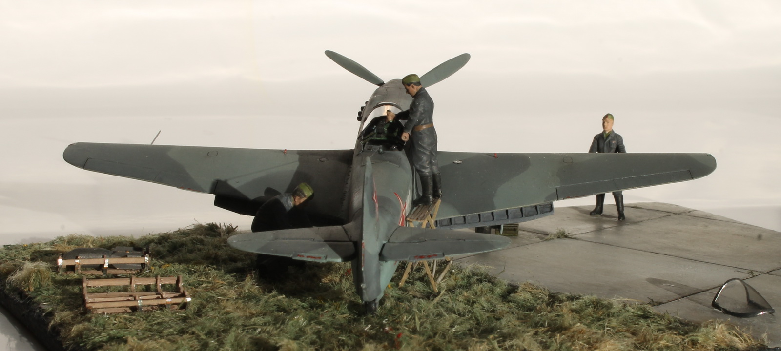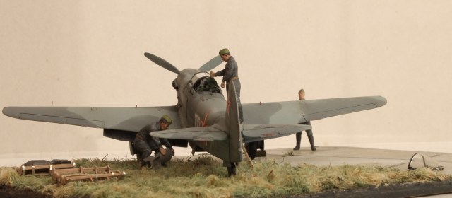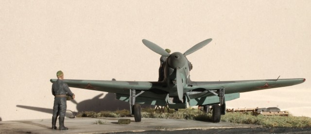 Работа очень интересная, заслуживает уважения, т.к. Константин приложил к ней не мало труда и упорства. 72 масштаб, работать очень трудно, а тут такое! Но... На выставке не был, а потому приходится ориентироваться на то, что вижу... Очень блеклые цвета, хотя и была ссылка на то, что это редактор. Брошенная бомба на взлётке без укупорки, наверное не совсем правильно.