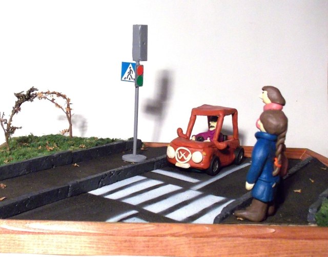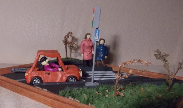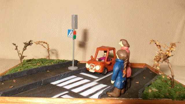 Вот вы люди!...Я даже этот вопрос предвидел, более того,сначала сделал водителю красный цвет,пешикам зелёный.Но негорящие цвета светофора получились невзрачными, и общий вид светофора как-то по кладбищенски выглядел.Напомню,макет для школы.Тема-"Светофор-друг человека". В итоге переделал светофор со всеми его цветами-так,на мой ,точнее наш,так как я делал совместно с сыном,взгляд,смотрится намного живее.Ну ,так в общем.Но критику никто не отменял!Спасибо всем за внимание,и за здоровую критику тоже!
