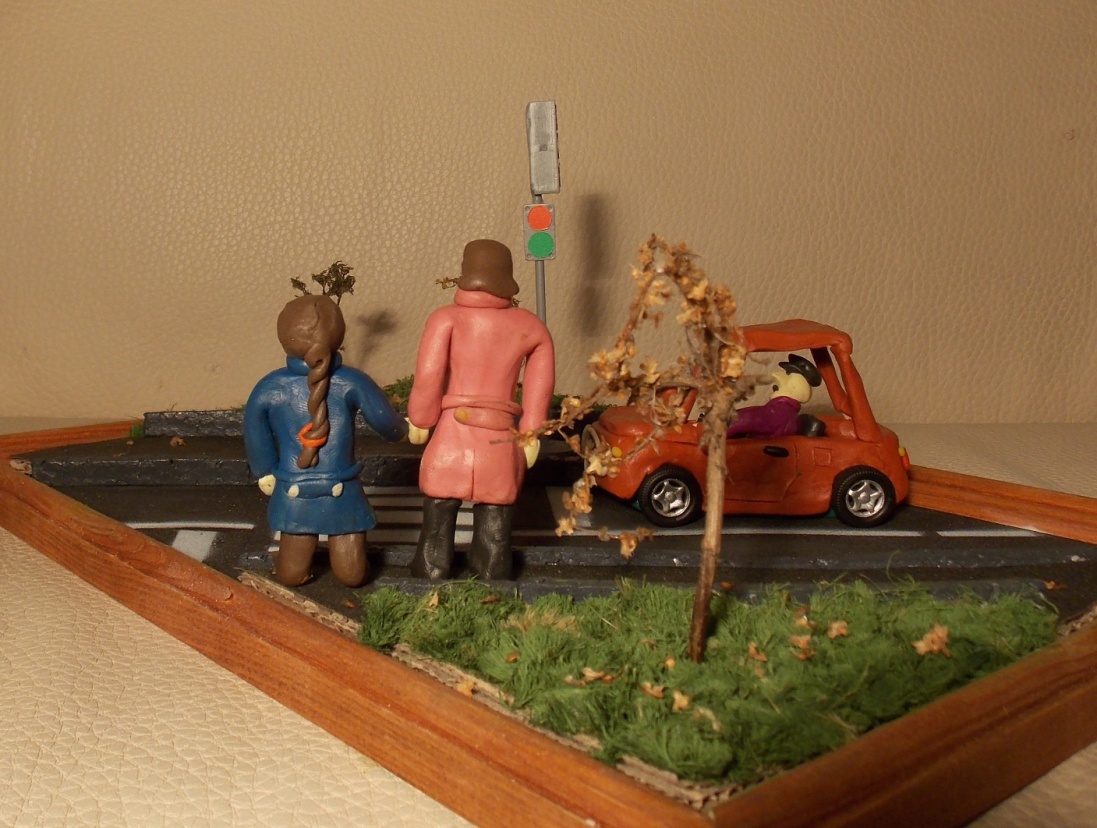 Понятно, что это не модель, но всё же решил выложить в "Песочницу". Может,кто-то увидев, улыбнется-тоже результат. В общем, сына-первоклашку в школе озадачили изготовить поделку на тему "Светофор-друг человека". Над названием, похоже, долго не думали. Я тоже решил не сильно напрягать фантазию, сделали примерно так,как делали пару лет назад для детского сада (http://karopka.ru/community/user/7876/?MODEL=291285 ). В общем, асфальт- наждачная бумага, фигуры и машина-пластилин, бордюры (или поребрики?) -пенопласт окрашенный, древесно-кустарная растительность-корни растений, березовые сережки.