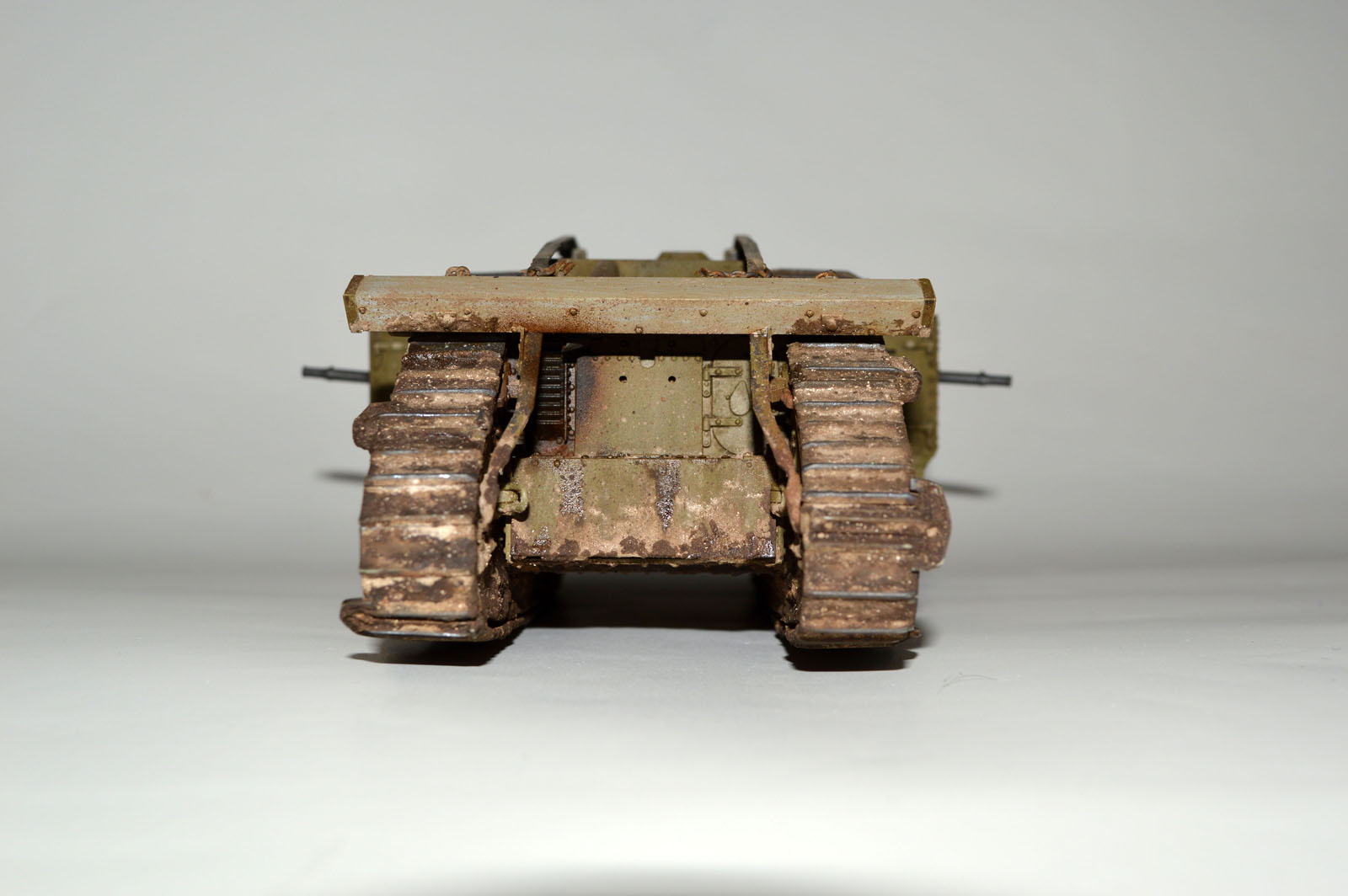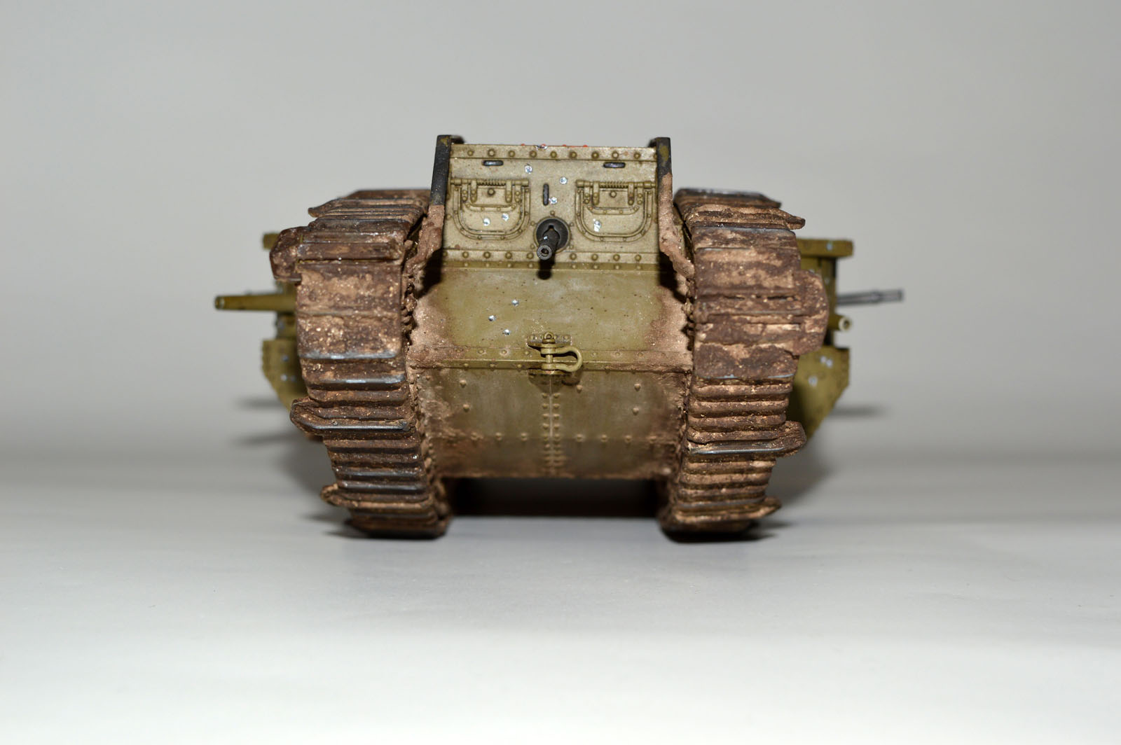 Немного истории по окраске британских танков в период ПМВ. Кратко - зеленый цвет использовалмя только в камуфляжной окраске (схема Соломона (цвета:розовая охра, травянисто зеленая, коричневая и либо темно-коричневая или черная, на базу, покрашенной в Серый) и т.п.).