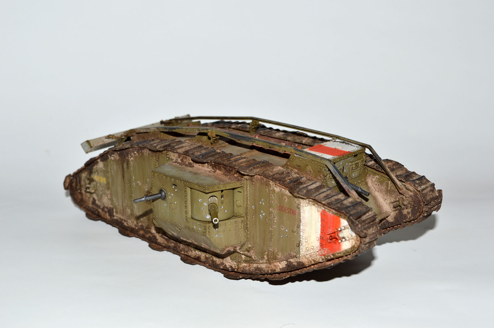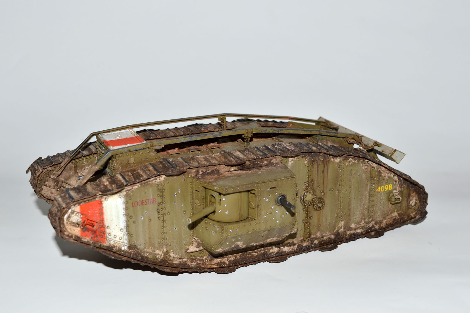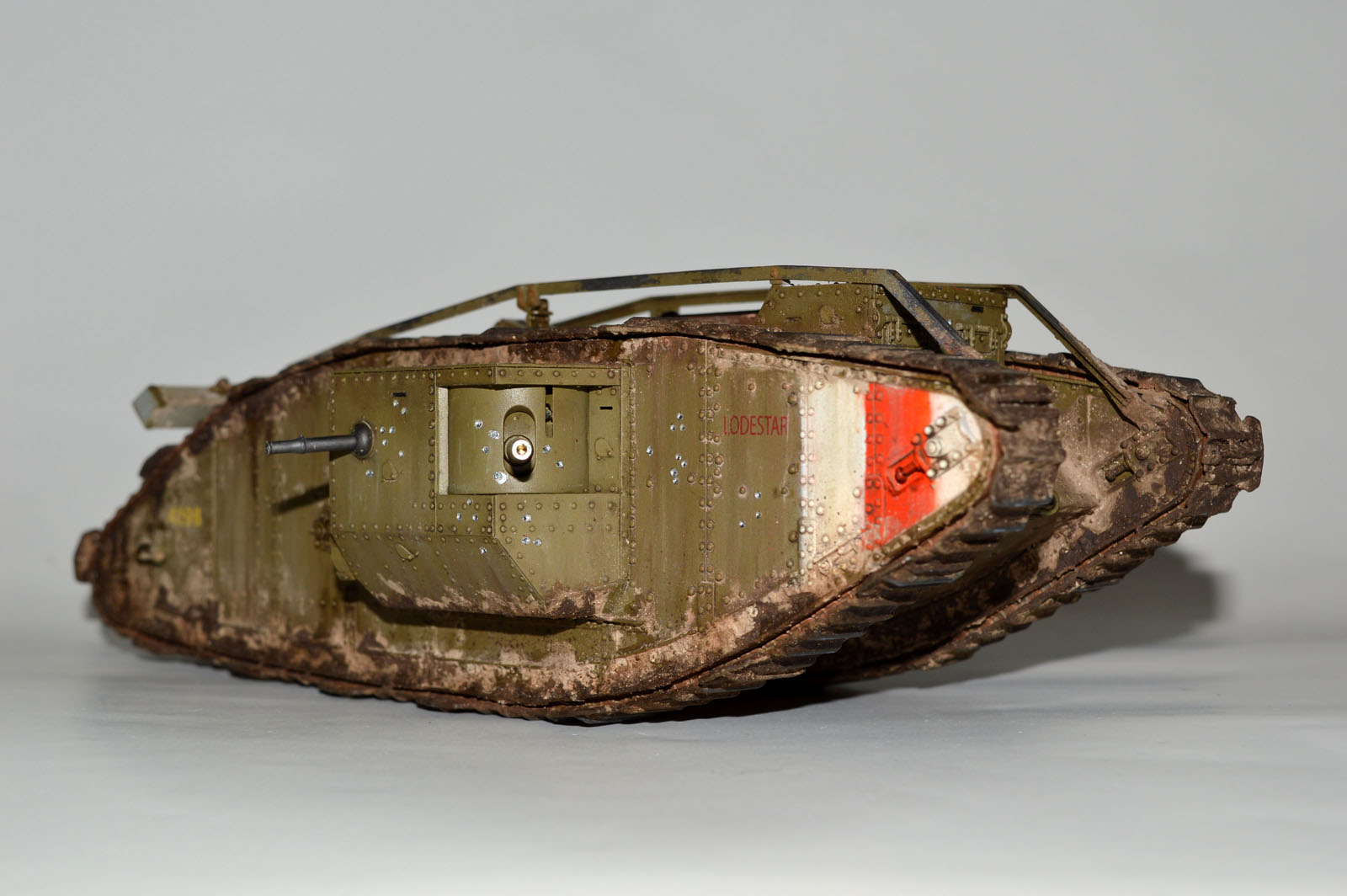 Существует доказательство в поддержку того, что «танковая коричневая краска» была применена только после прибытия танков во Францию. Во-первых, некоторые из танков с 1917 года, кажется, не имеют изменения номеров, нарисованных на бортах корпуса, указывая на перекраску во Франции. Почти уверен, что ряды этих цифр были нарисованы во время производства (тщательный осмотр оригинальных фотографий показывает, что некоторые из них были отмечены еще с переписью номера, но из-за своей позиции номер часто покрыт грязью.) Во-вторых, некоторые фотографии Мк. IV с переписанным номером еще ясно видны цветной прямоугольник вокруг номера, которое отличается от остальной части танка. Кажется вероятным, что это оригинальный серый, указывая, что экипаж замаскировал номер до перекраски в танковый коричневый цвет. Он также может быть, потому что учебные танки в Англии не были регулярно перекрашены в танковый коричневый и остались в сером.