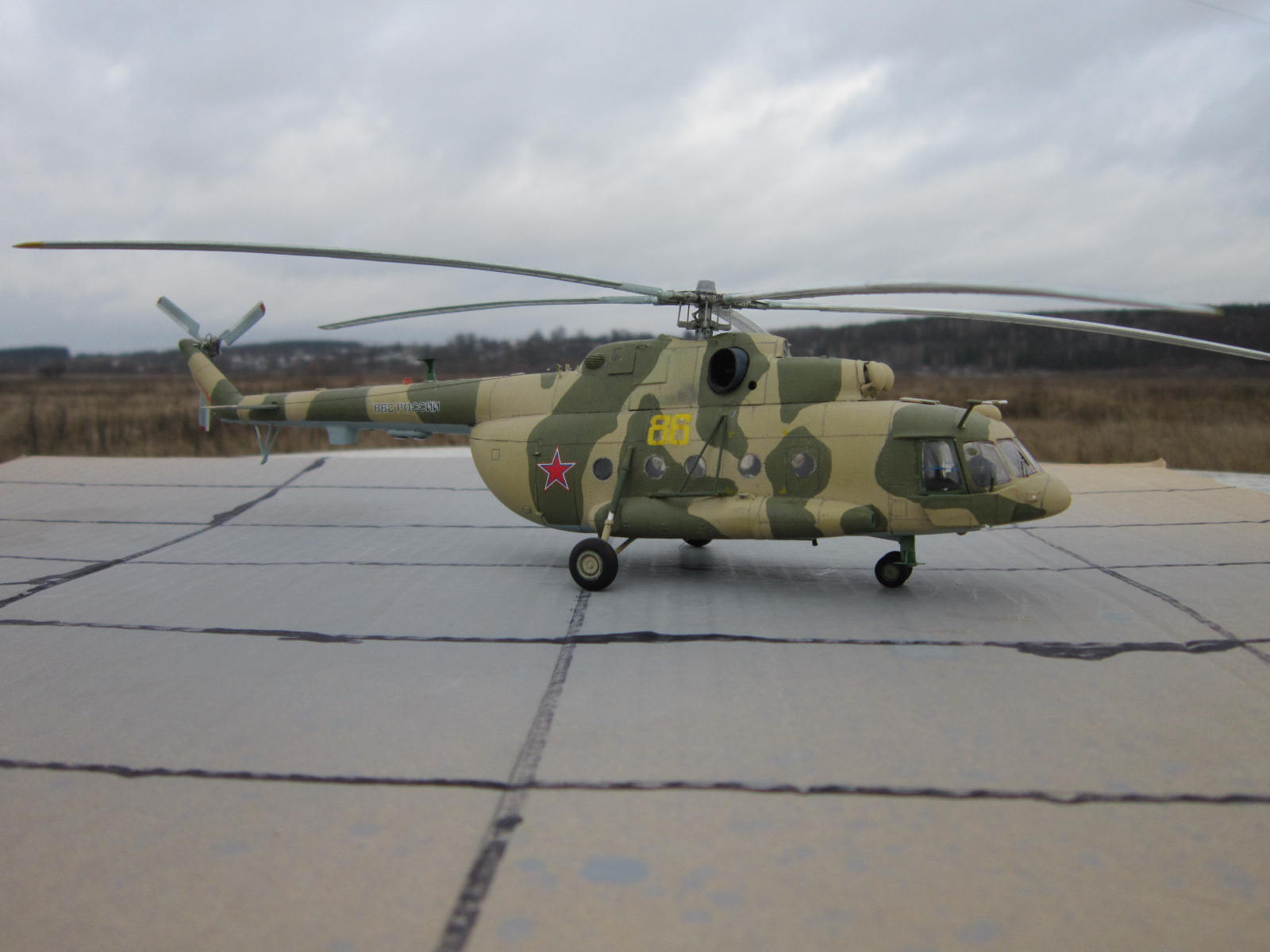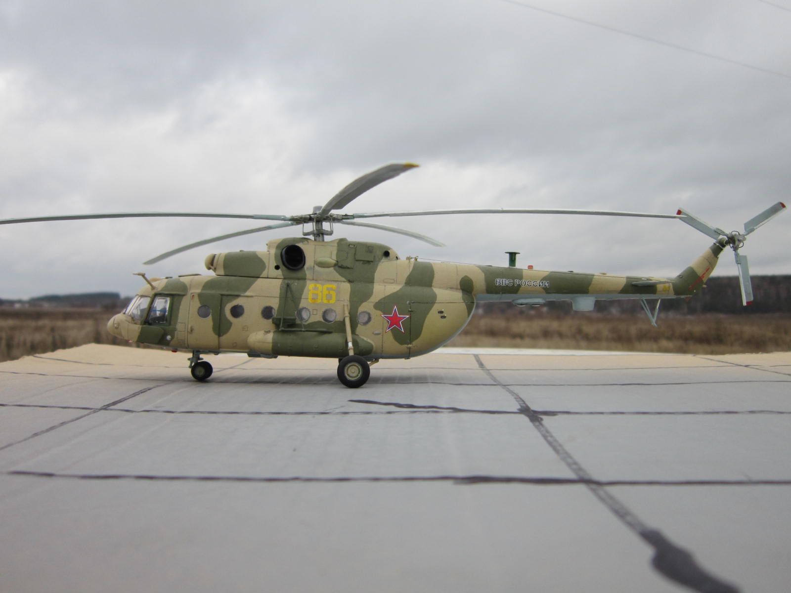 Хороший вертолет получился! Картонка изображающая взлетку не понравилась, лучше сделать нормальную.