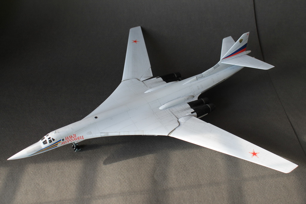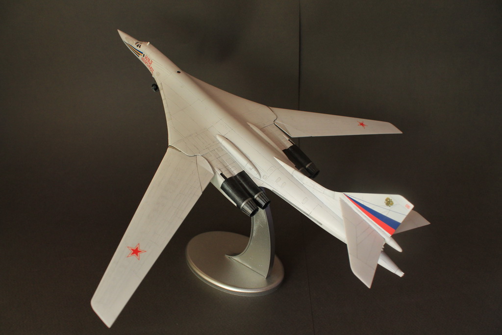 Представляю свою модель самолета Ту-160. Всем хорошо известная модель от Звезды,в описании не нуждается. Собрана была несколько месяцев назад. Сборка из коробки,без каких-либо доработок. Собрал для себя на полку.
