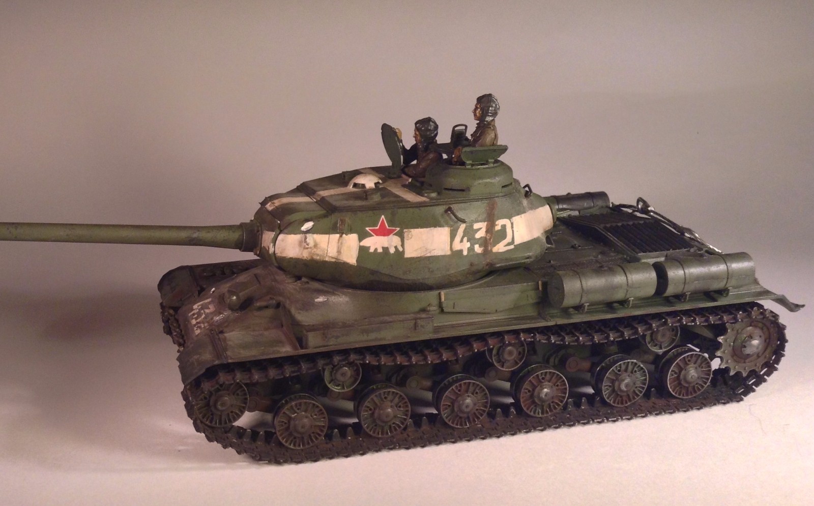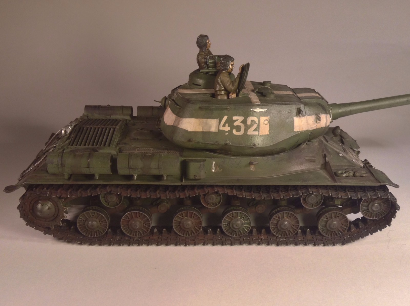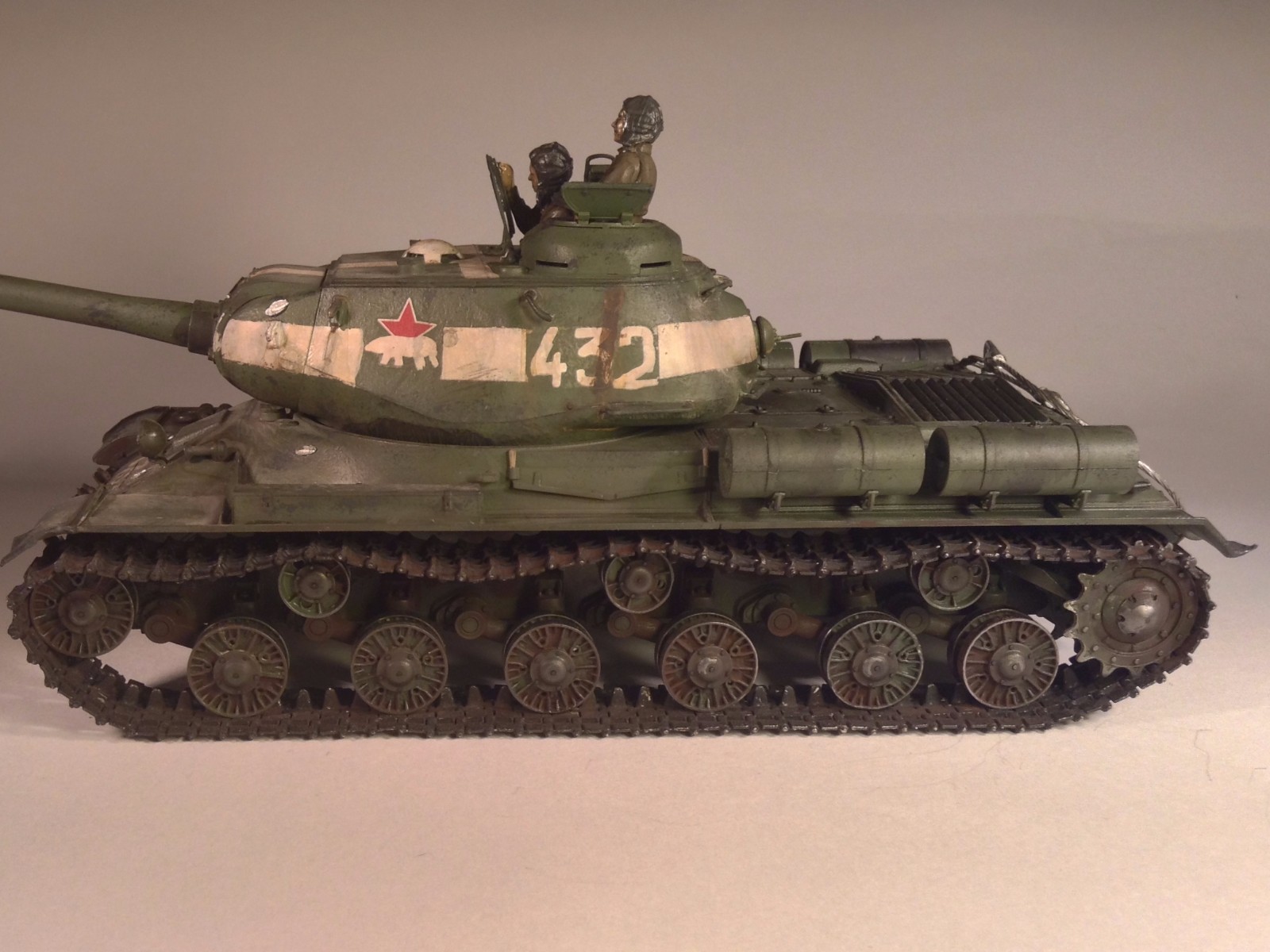 Зачем вы блямбы такие забульбенили серебристые в качестве боевых повреждений? Из ИСа терминатора Т-1000 убили? Про фигурки сказали про блеск. На баках не зачищены места соединения половинок. И видно в спешке пила была покрашена в базу....Все, работа закончена, теперь можно и в галерею ехать.