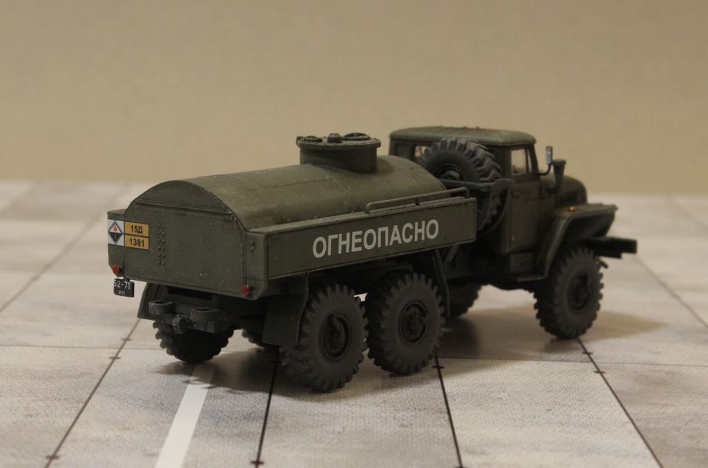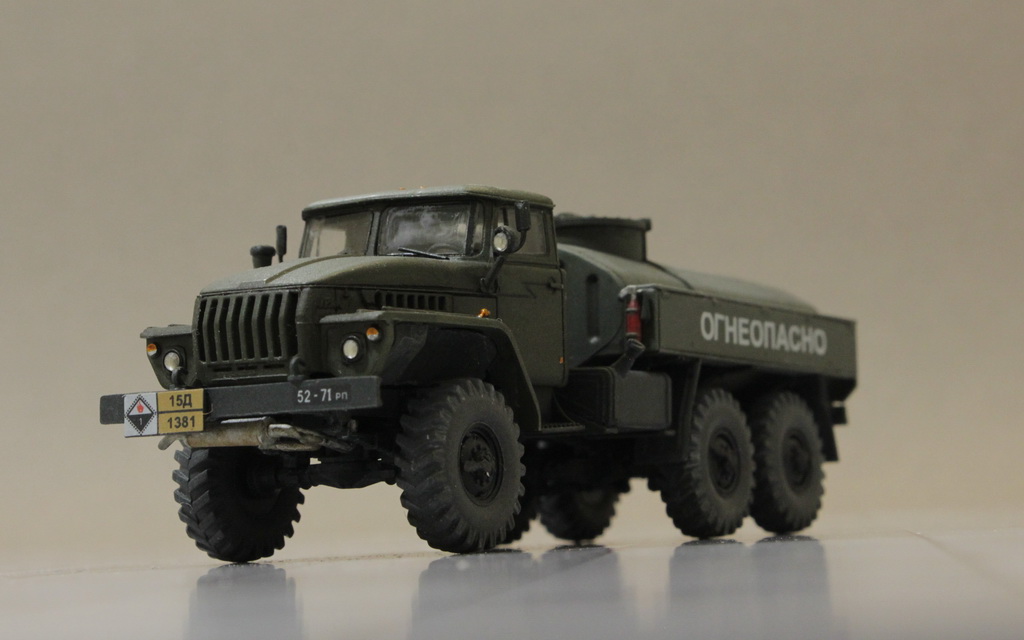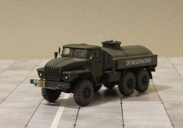 Доброго времени суток, уважаемые каропчане. Хочу предоставить вашему вниманию модель топливозаправщика на базе Урала от ICM. В целом набор, на мой взгляд, оказался не плох, но всё же лучше поглядывать на фото реальных машин при сборке, подгоняя кабину и бочку на раме. Увы, понял это поздно, поэтому конечно без косяков не обошлось.В общем, что получилось, то получилось, судить вам.