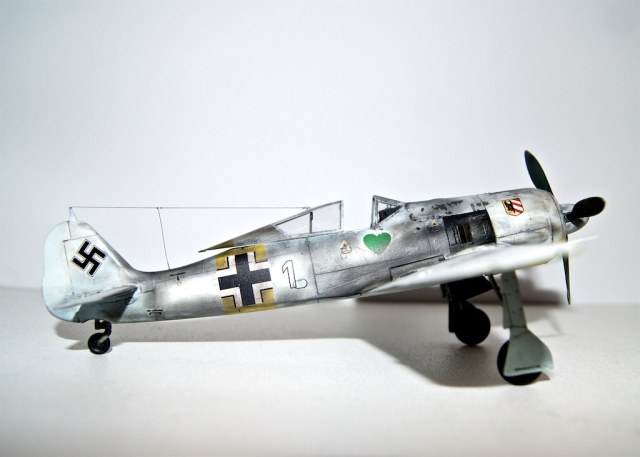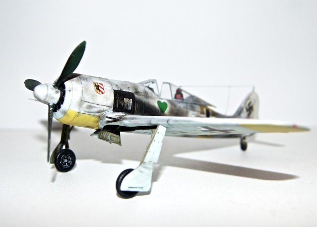Эта птица сделана по фотографии/фотографиям зимы 1942-1943 годов. Аэродром Красногвардейск (ныне - Гатчина) под Ленинградом. 54-я истребительная эскадра, JG54. Знаменитые Grunherz, "Зелёные сердца" (читал, наши летчики величали их "Зелёными...", пардон муа, из песни слов, как говориться, "... жопами").