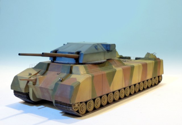 Насколько я понимаю, танк должнен был весить 1000 тонн - где-то читал, что поэтому и "P1000". Так что башня в 720 тонн - это маловероятно. Раз уж у Мауса с передвижением проблемы были, то этот по идее должен был ездить по толстенным бетонным дорогам... Бред, одним словом.
