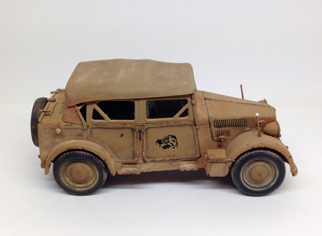 , Вы вытянули, что возможно. Присоединяюсь к предложению - оттенок бы тенту другой, тем более, что у итальянцев "защитный зеленый" был близок к немецкому фельдграу. И ещё один нюанс - кругляши габаритных усов у итальянцев красили в красный цвет (белые - немецкий стандарт).