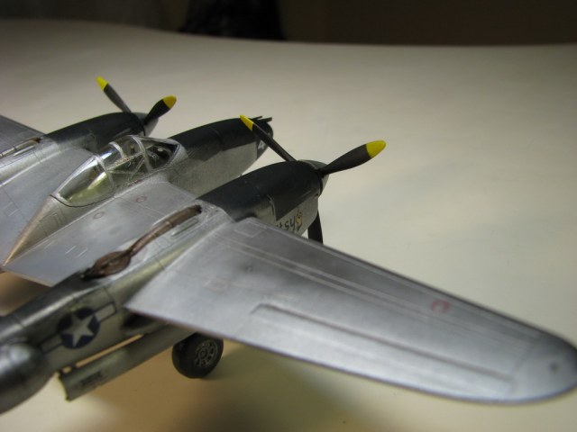 Переделал винты, добавил воздухозаборники турбокомпрессоров, антенну (снизу носа), вооружение (будем считать, что два нижних пулемета спер жадный прапорщик)) ), заодно прошелся пигментами. Фото (кроме заглавной) отсняты заново.