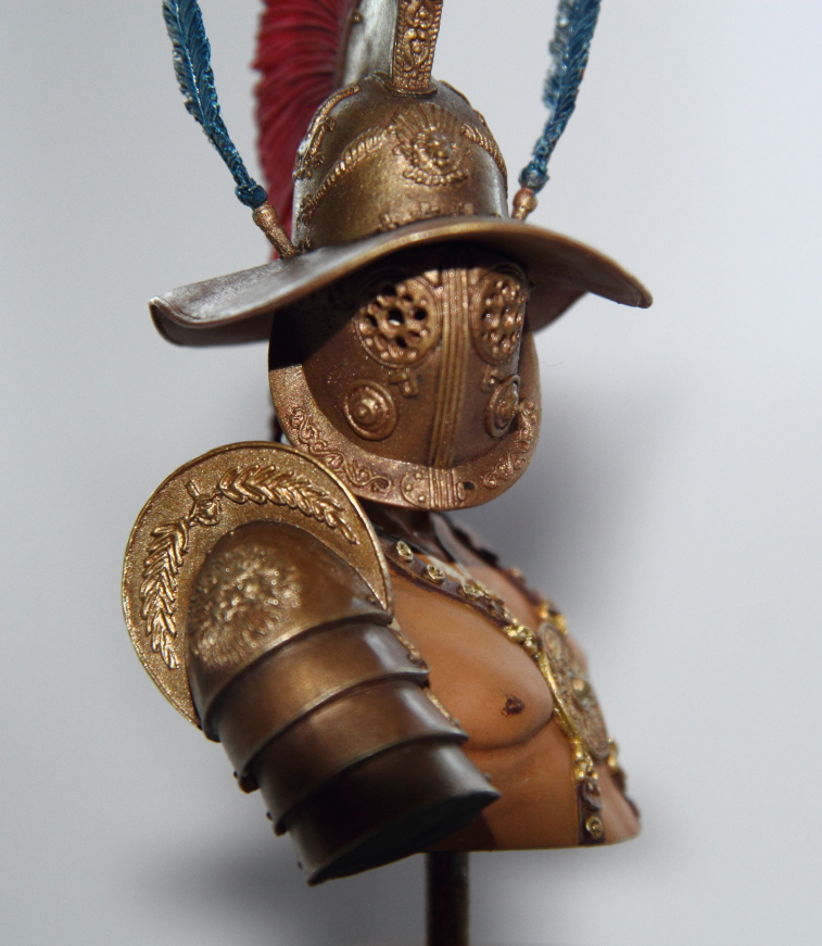 Здравствуйте коллеги. Представляю вашему вниманию мою первую попытку работы с бюстами. Куплена модель случайно, попалась на глаза в ТМ что в Олимпийском и не смог удержаться. Подкупила возможность сделать в закрытом шлеме, для меня это был очень важный фактор, так как с покраской лица у меня постоянные проблемы. Не получаются лица, видимо просто это не мое :)
