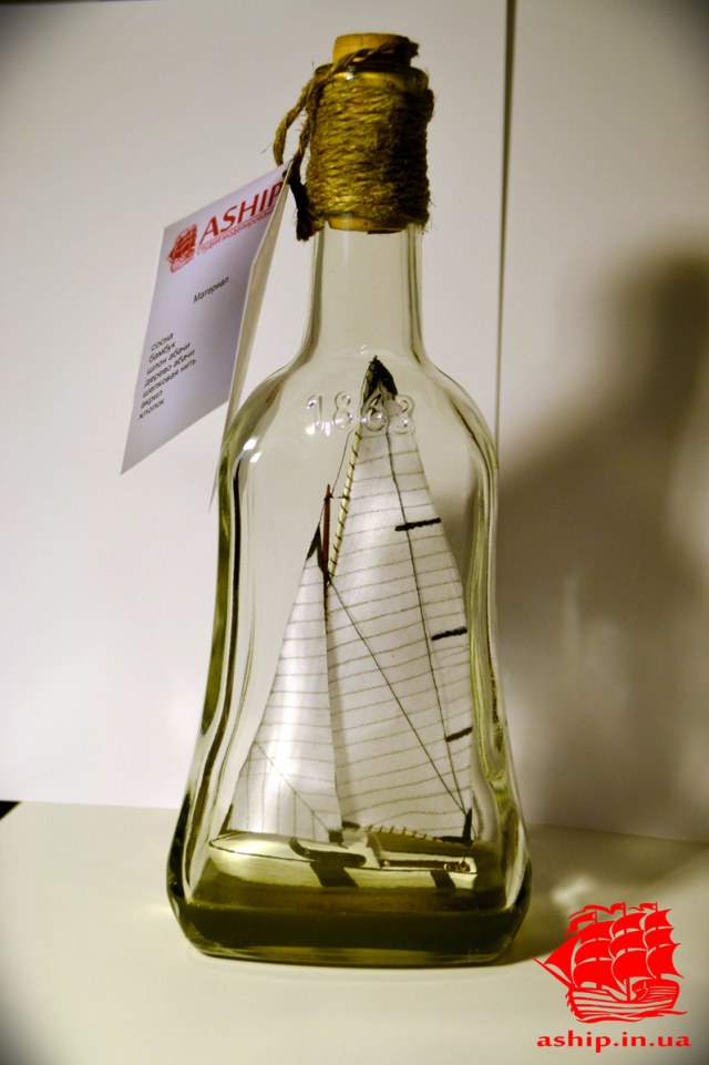 По своим личным разработкам решил повторить данную модель яхты, но в этот раз поместив ее в бутылку. Скажу честно поставил себе сложную задачу, так как при вертикальном положении бутылки всплыло множество нюансов с которыми мне пришлось бороться и выкручиваться. Но преодолев это, модель, как по мне, получилась очень даже неплохо.