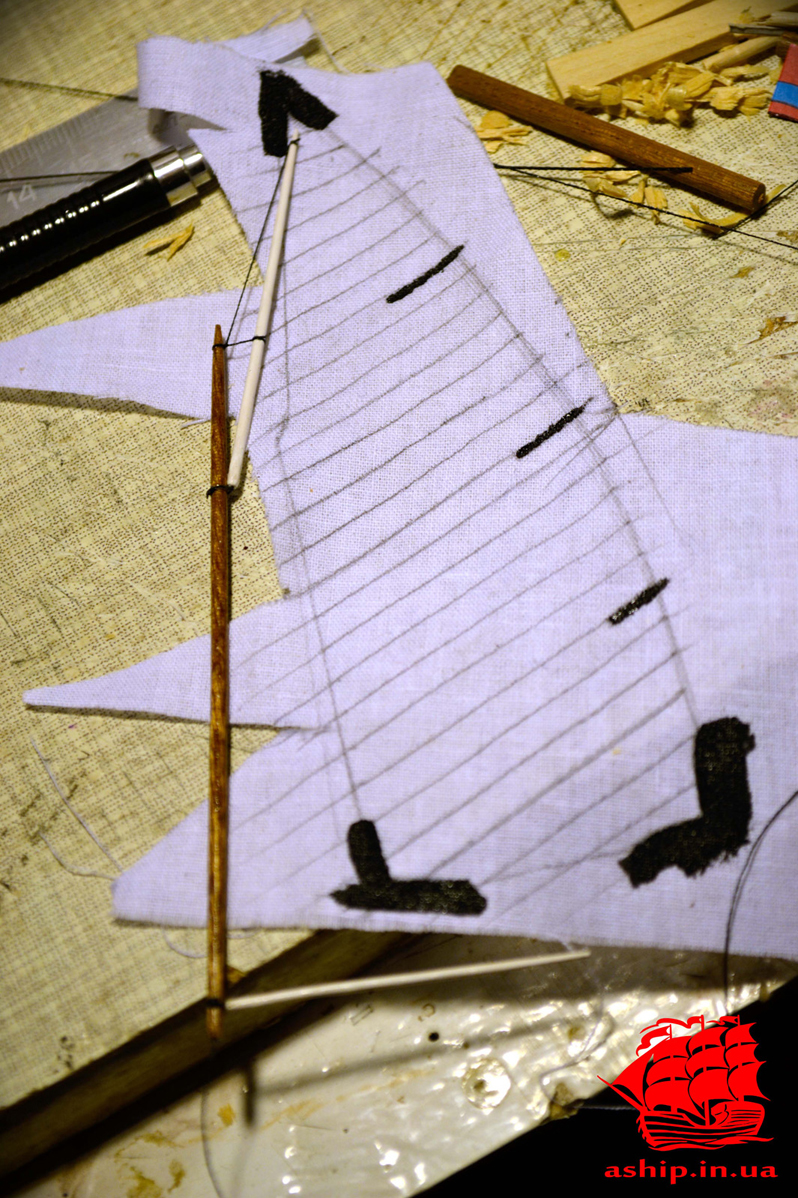 материал: сосна, бамбук, шпон абачи, дерево абачи, шелковая нить, акрил, хлопок (паруса).