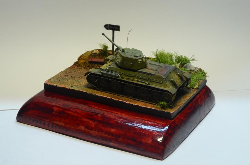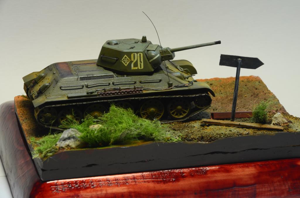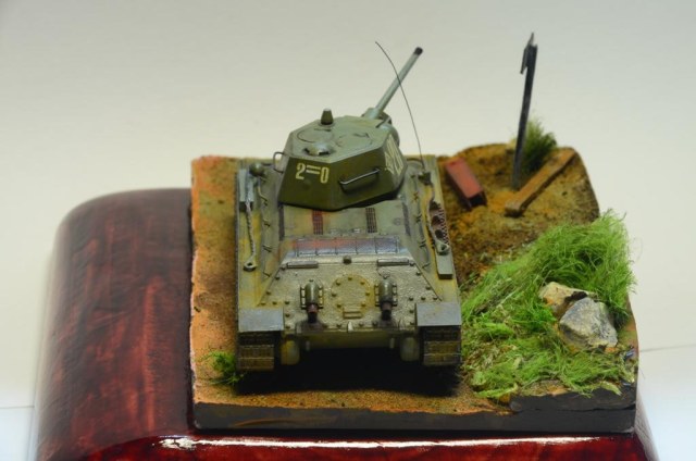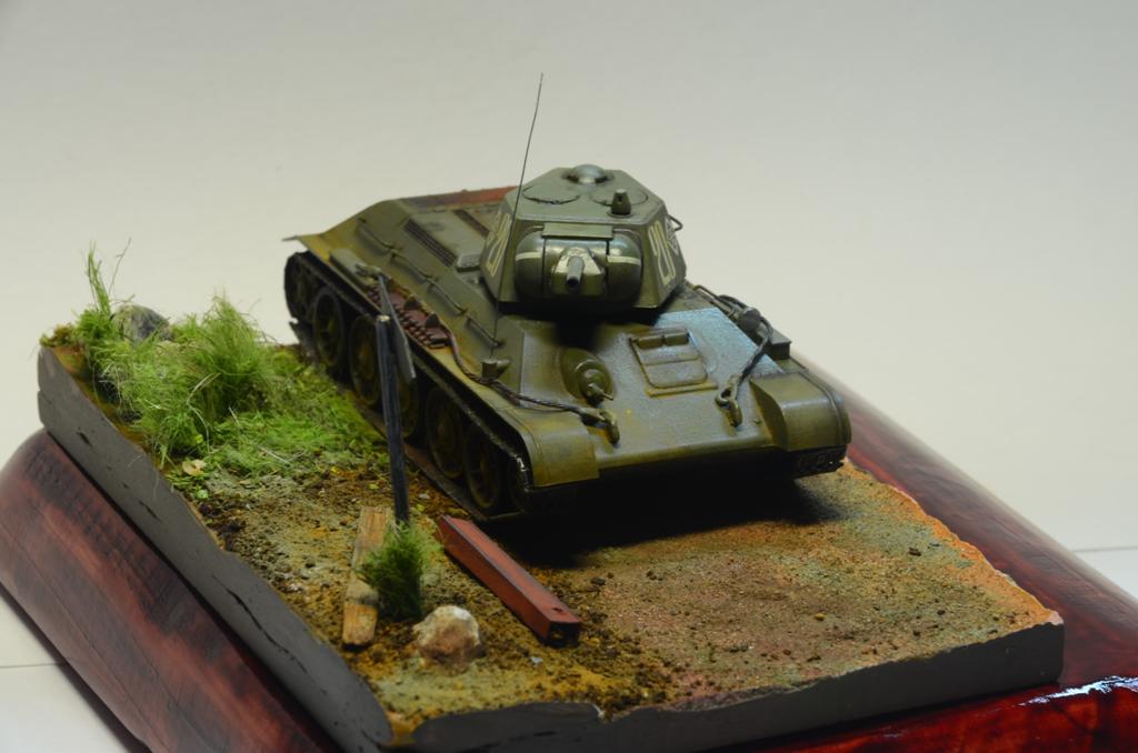 Добрый день коллеги. Представляю Вашему вниманию мою новую работ после небольшого перерыва. Первая работа в БТТ (у меня вообще пока очень мало работ, но все они с душой делаются). Это небольшая виньетка (БЕЗ исторической привязки) где главный герой Т 34-76 от Звезды в масштабе 1:72. В матчасть не лез вообще, сделал ряд доработок для зрелищности (антена, поручни). Подставка, основание все самопал кроме пигментов, пигменты от Зипмакета. Если тапки, то без подков.