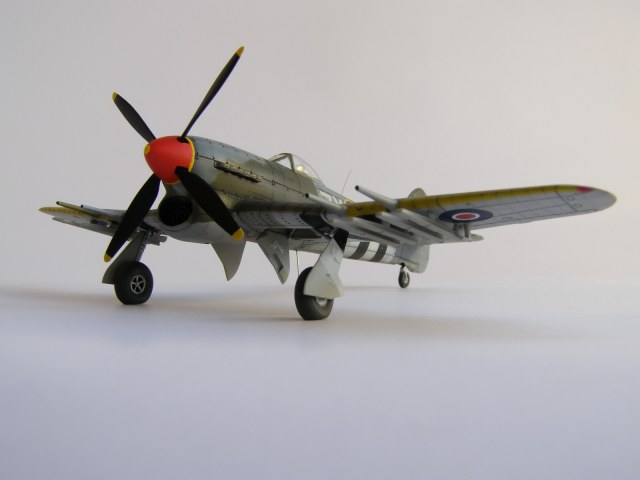 От сборки модели получил удовольствие. Единственное огорчение - "недолитый" козырек фонаря кабины, который пришлось делать заново. Сделал также БАНО и антенны. Прокатал ревитером заклепочные швы. Для лучшего сопряжения кока винта пришлось утоньчить носовую часть фюзеляжа. Сомнения вызывает жесткость крепления основных стоек шасси (боюсь, что при длительной стоянке могут уйти вперед).