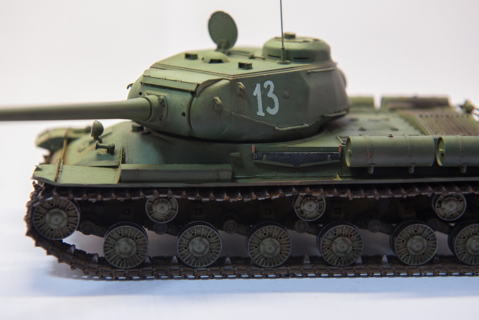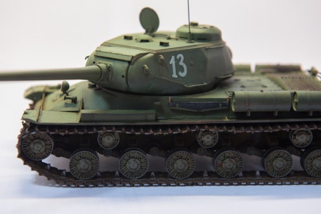 Как-то монотонно смотрится... Как игрушка. Собрано и окрашено аккуратно. Стык на правом баке просматривается. Не понял прикола с номером на правом борте.