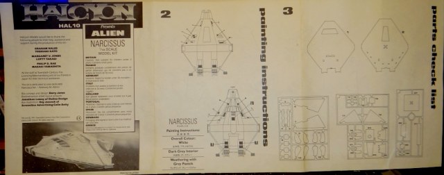 Приветствую Вас дорогие Каропчане и представляю Вашему вниманию модель от фирмы HALCYON - спасательная шлюпка "NARCISSUS", космического корабля NOSTROMO, космической корпорации WEYLAND YUTANI из фильма "ALIEN". В картонной коробке лежит подробная и понятная инструкция, 2 литника белого цвета, 2 половинки самой шлюпки и литник прозрачных деталей тёмного цвета. Так же имеется листочек с декалями. Так же в комплекте идёт подставка из тёмного ортстекла. Всё аккуратно было запечатано в пакеты и аккуратно уложено. Сама модель датирована 1991 годом. Качество литья очень хорошее , имеются небольшие утяжинки по краям самой шлюпки, больше не нашёл. Так же местами присутствует облой, но очень мало, прям капелька. Следы от толкателей вроде все на внутренних частях деталей. Этим экземпляром так же очень доволен и это уже 2-я часть моего новогоднего подарка!