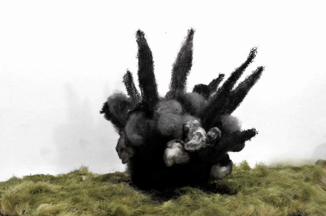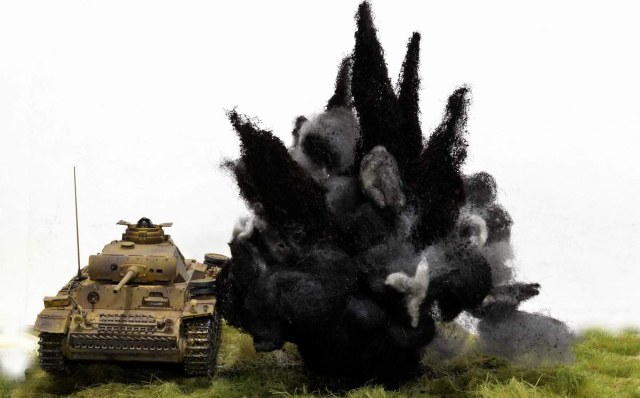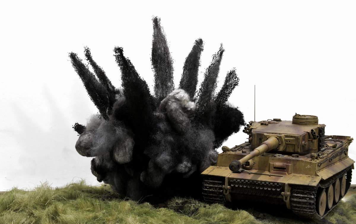 Такой большой взрыв может быть только от фугасного/осколочного снаряда,бронебойный в основном вообще болванкой идёт.Логично только,если это огонь по сопровождающей танки пехоте. Излишнюю волосатость взрыва,может,аккуратно подпалить зажигалкой? При определённой сноровке,думаю,получится,сейчас пробовал на синтепухе,он хоть и уменьшается при этом в объёме,но вот дым выходит более неравномерный.