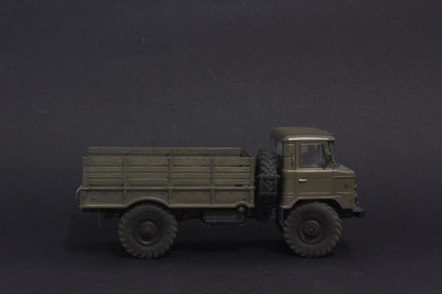 Сразу скажу, как человек, пытавшийся его собрать: задний мост слишком узкий, точнее, его колея, кузов непропорционально широкий, а кабина, напротив, узкая. И надо что-то подложить под топливные баки - а то они слишком глубоко сидят. Попробуй еще дверные ручки подточить - а то они как лопаты)