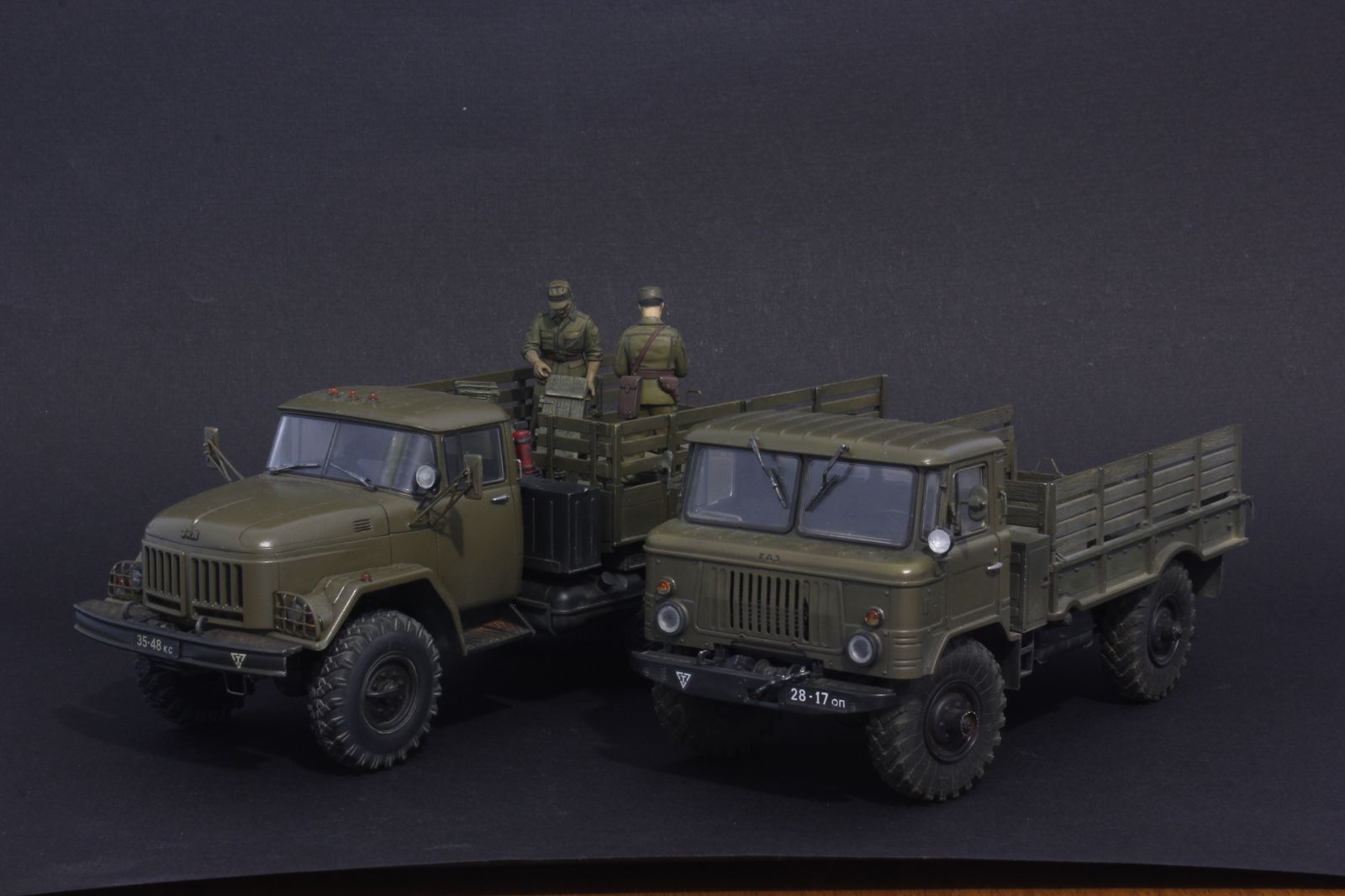 ЗЫ И о фигурках другой модели (хоть уже и не относится к ГАЗ-66, но ЗиЛ-131 рядом с ним) - да, телесный "аутентичный" цвет, хорошо. Но, уделяя столь большое внимание копийности прототипа, "копийности" кожи не нужно уделять внимания? ))))) Я лично, фигурки еще ни разу ни собирал, не красил. Скоро придется за это взяться. Но однозначно знаю, что использовать рекомендуемую краску телесного цвета никогда использовать не буду.