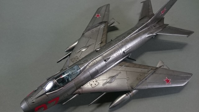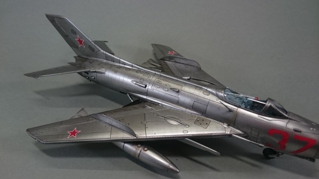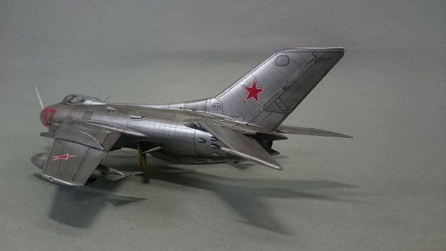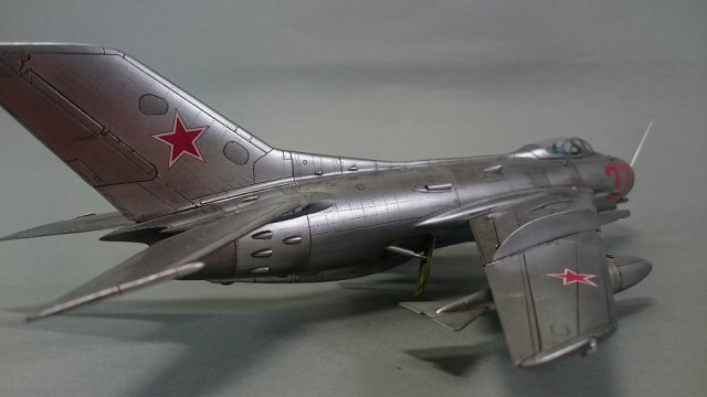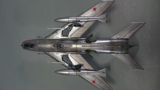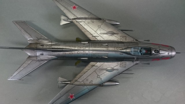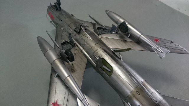 Последнюю работу над МИГ-21 не прибегал к черному глянцу, покрыл сверху на грунт металликом.