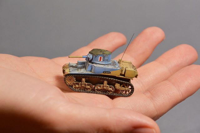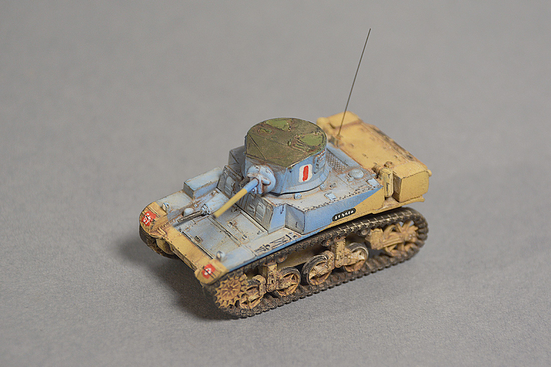 Этот камуфляж на данной модификации вызывает большие сомнение (а у специалистов, думаю, даже и не вызывает ; ) Но устоять не мог. Вряд ли когда представится еще возможность покрасить танк в голубой цвет и я не мог не поддаться соблазну.