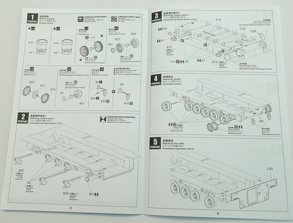 Катки необычны – они из 2-х частей. Но членение сделано не для удобства покраски (как на трумповском Т-62 например), а из-за сложной формы. Граница цвета проходит по внешней детали, а не по стыку.