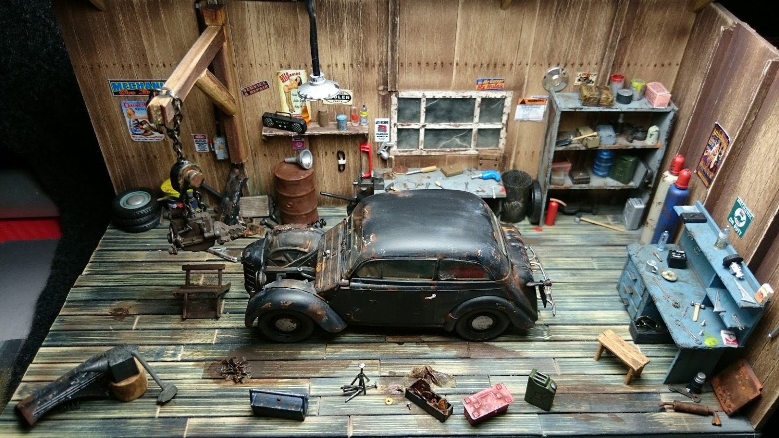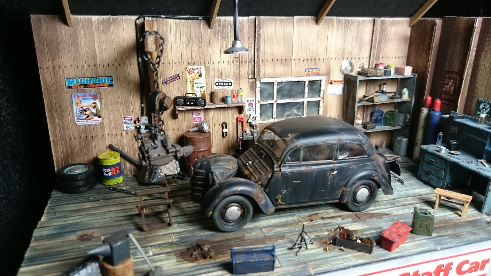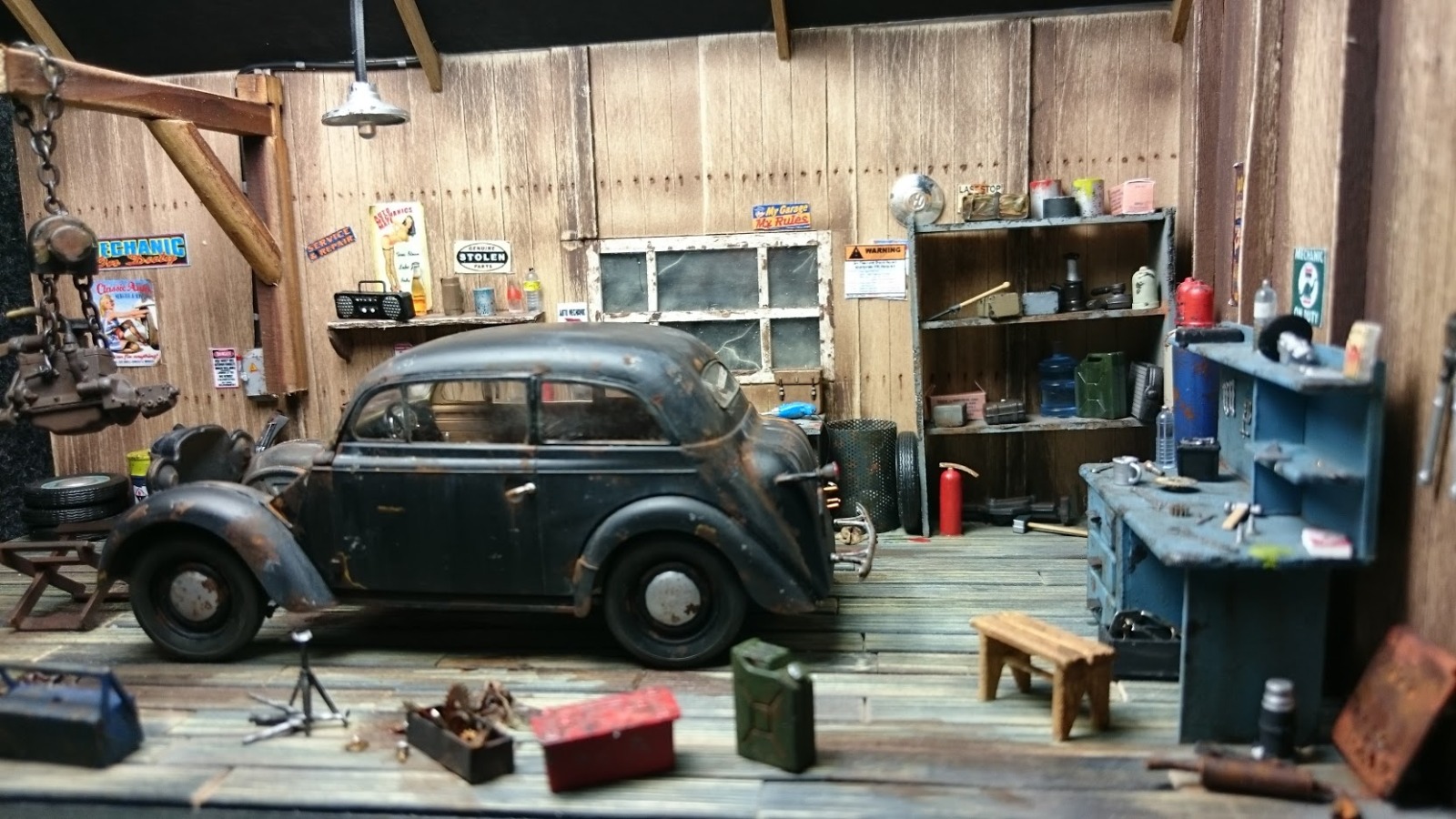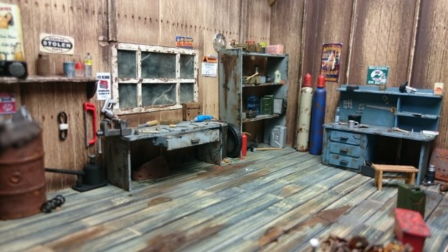 В сравнении с отличными элементами мастерской, мальчуган сделан плохо. Окраска, деталировка - совсем не на уровне работы в целом. Без него диорама выглядит значительно лучше!