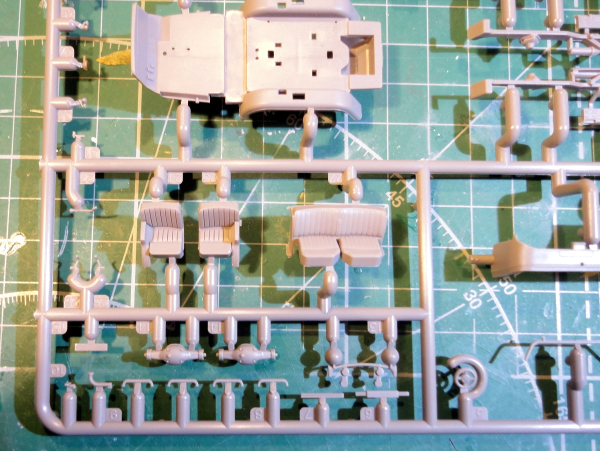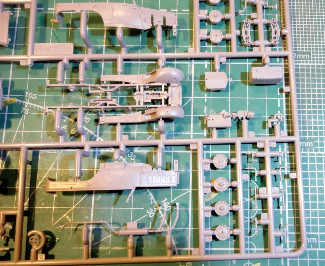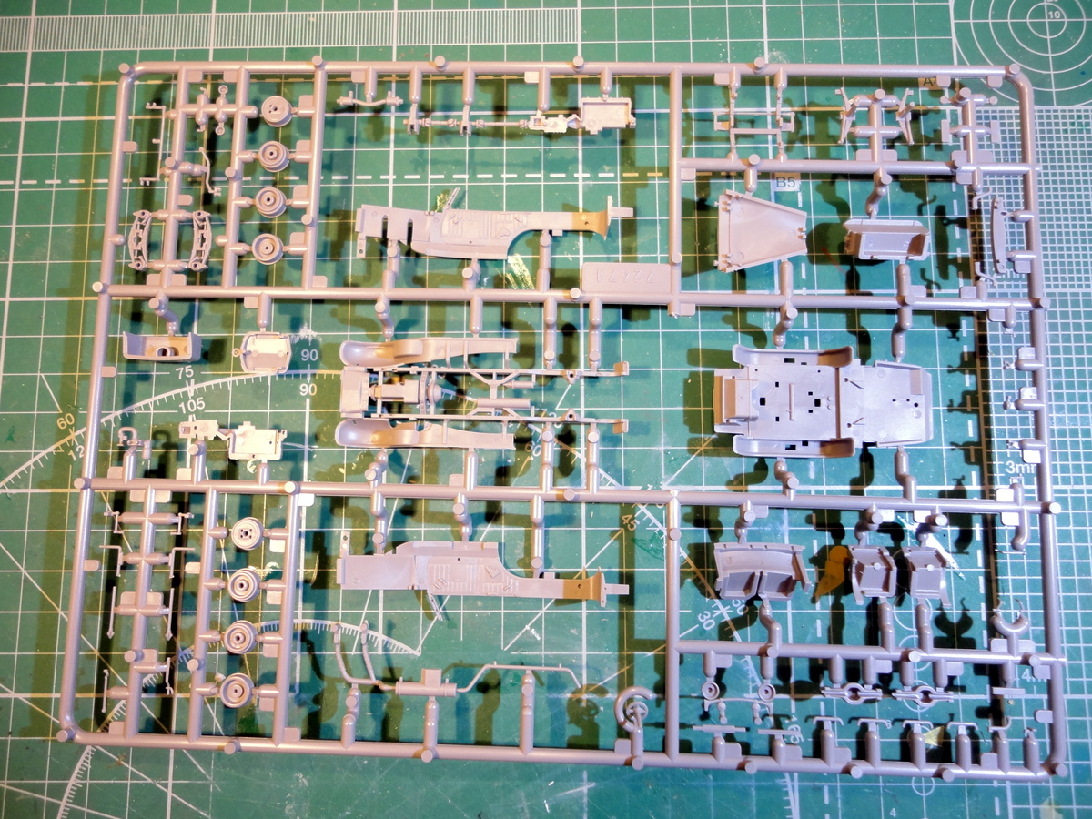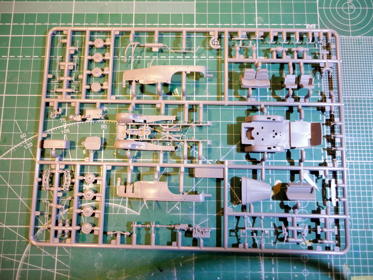 Дефектов литья на отливках не обнаружил. Прозрачные детали действительно прозрачны. Колеса отлиты из ТПР, протектор -так себе... . Оси-оцинкованная проволока. Декаль напечатана недурственно, естественно, "паучка" нет, да и Бог с ним.