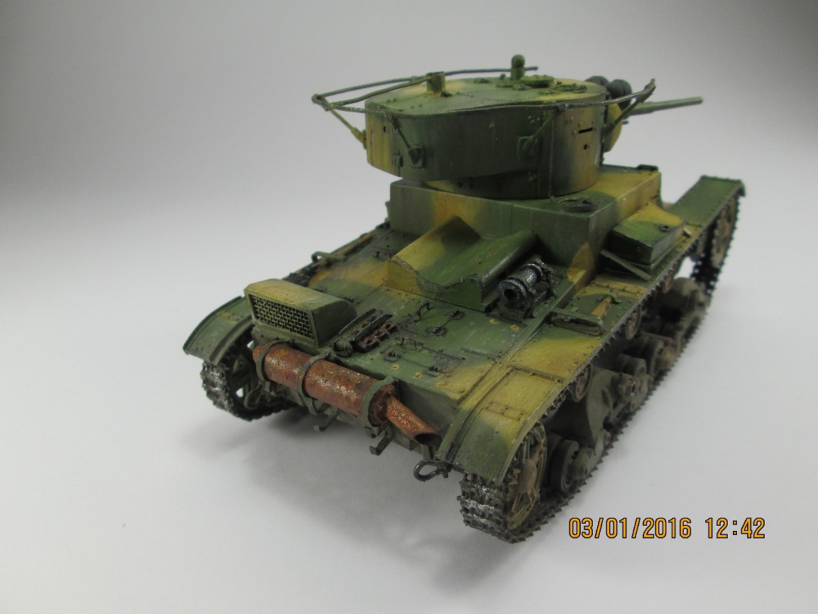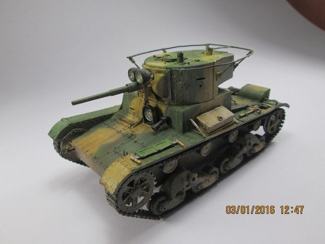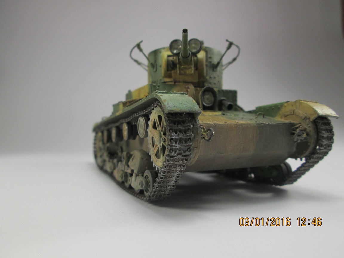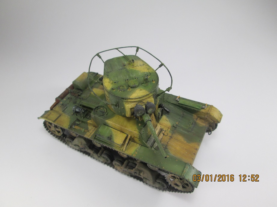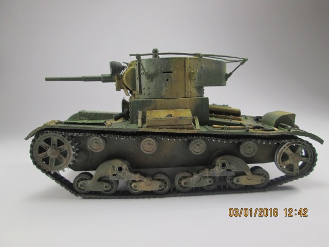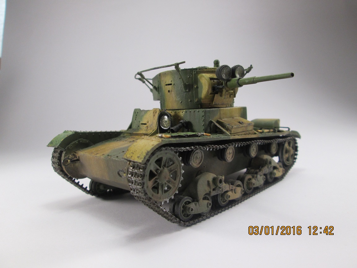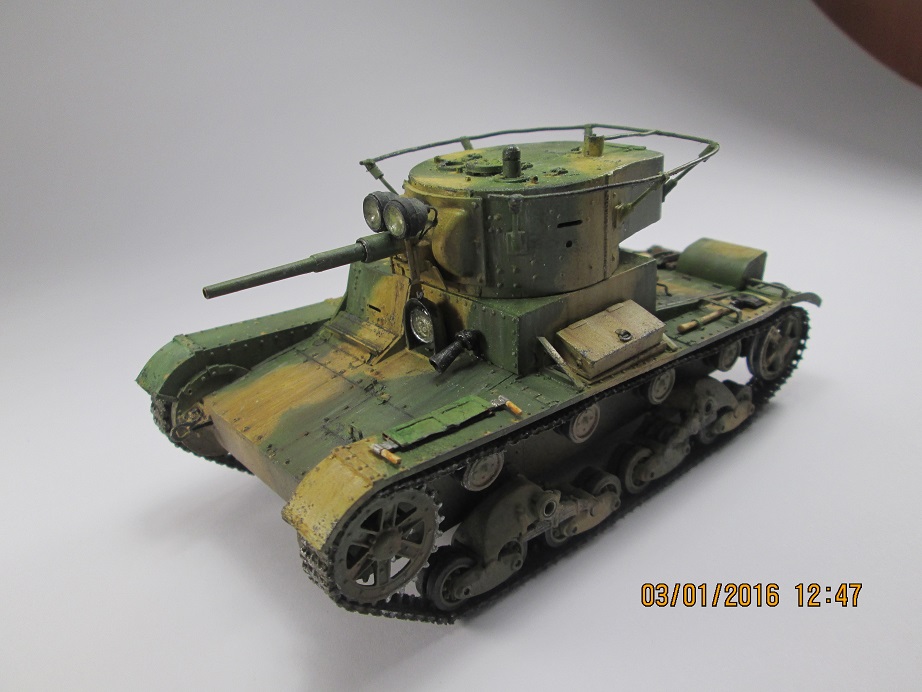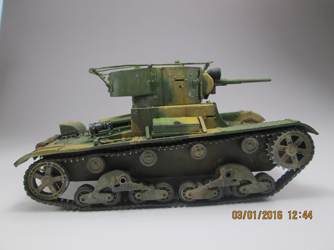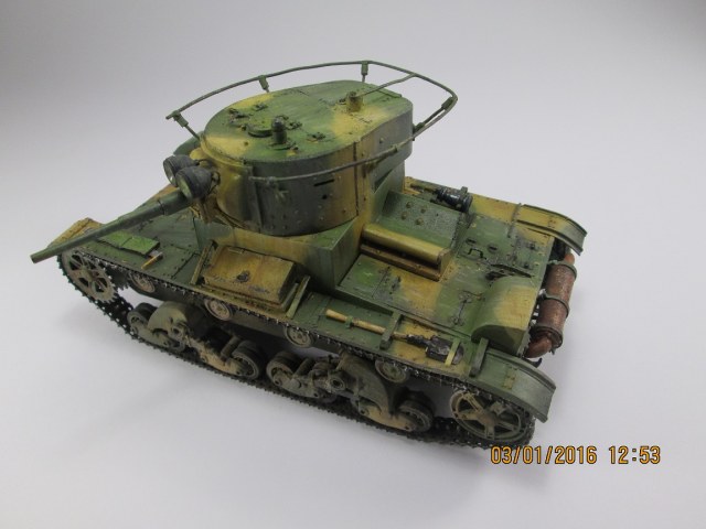 Belmondo, Анатолий, Алексей, спасибо за отзывы. Алексей по моему вы погорячились с секундным делом. Я не буду спорить, с Вами, про матчасть. Но я ведь не просто, так с дури, взял и сделал. Возьмите книгу М. Коломийца "Т-26". Там видно, что куда уходит и куда повёрнуто. Камо по инструкции из коробки. В реале на модели ржавчина не блестит. На фото да.