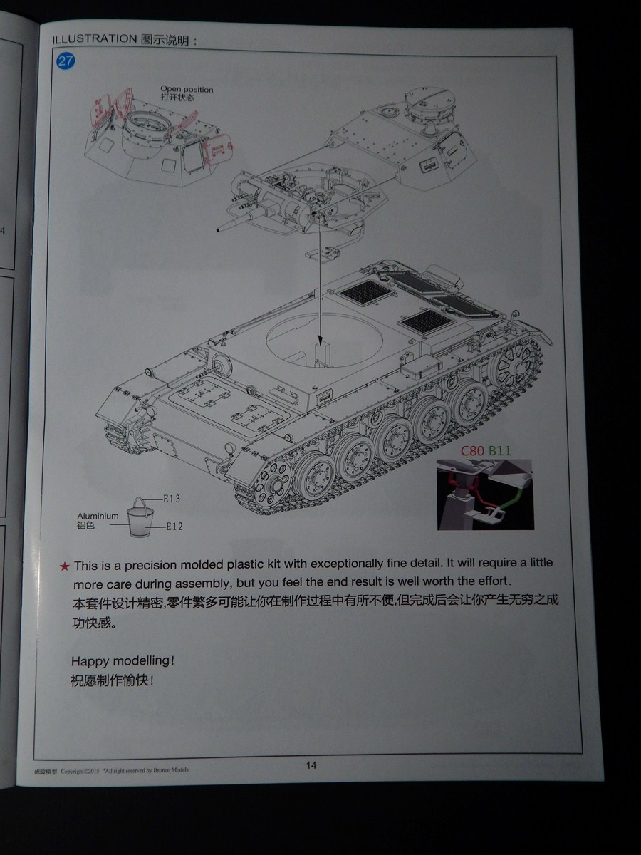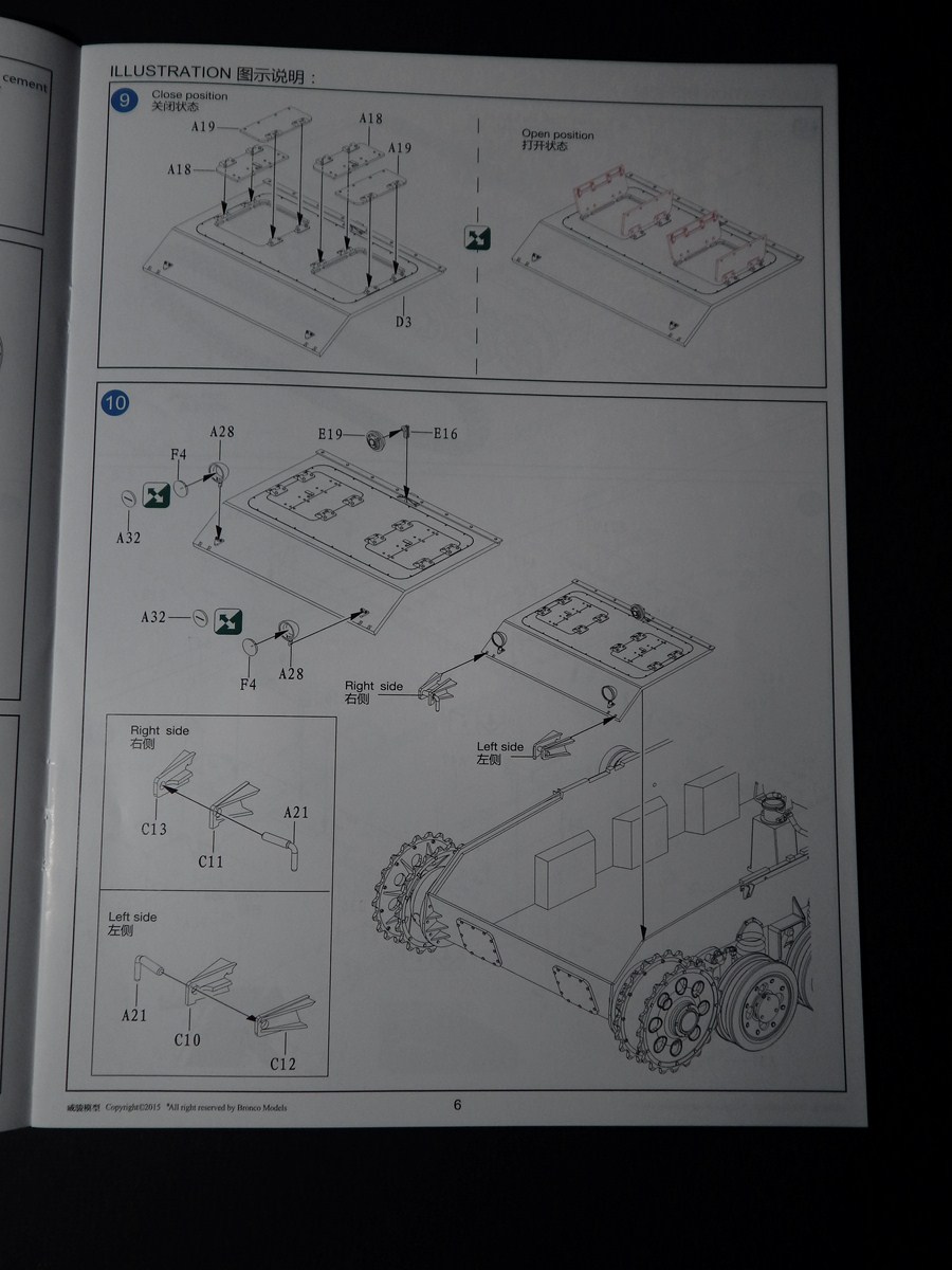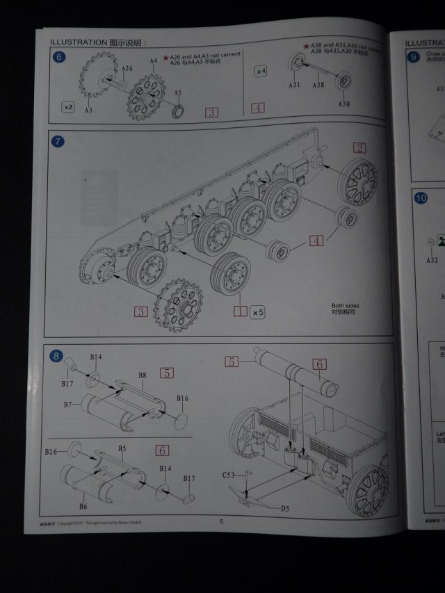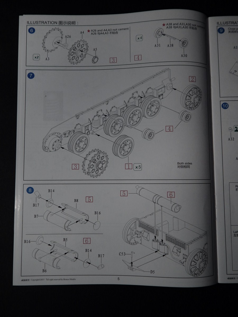 Инструкция исполнена в виде книжки, сборка разбита на пункты, все четко и понятно. Даны декали на 4 вида маркировки. Подробно детализирована казенная часть орудия.