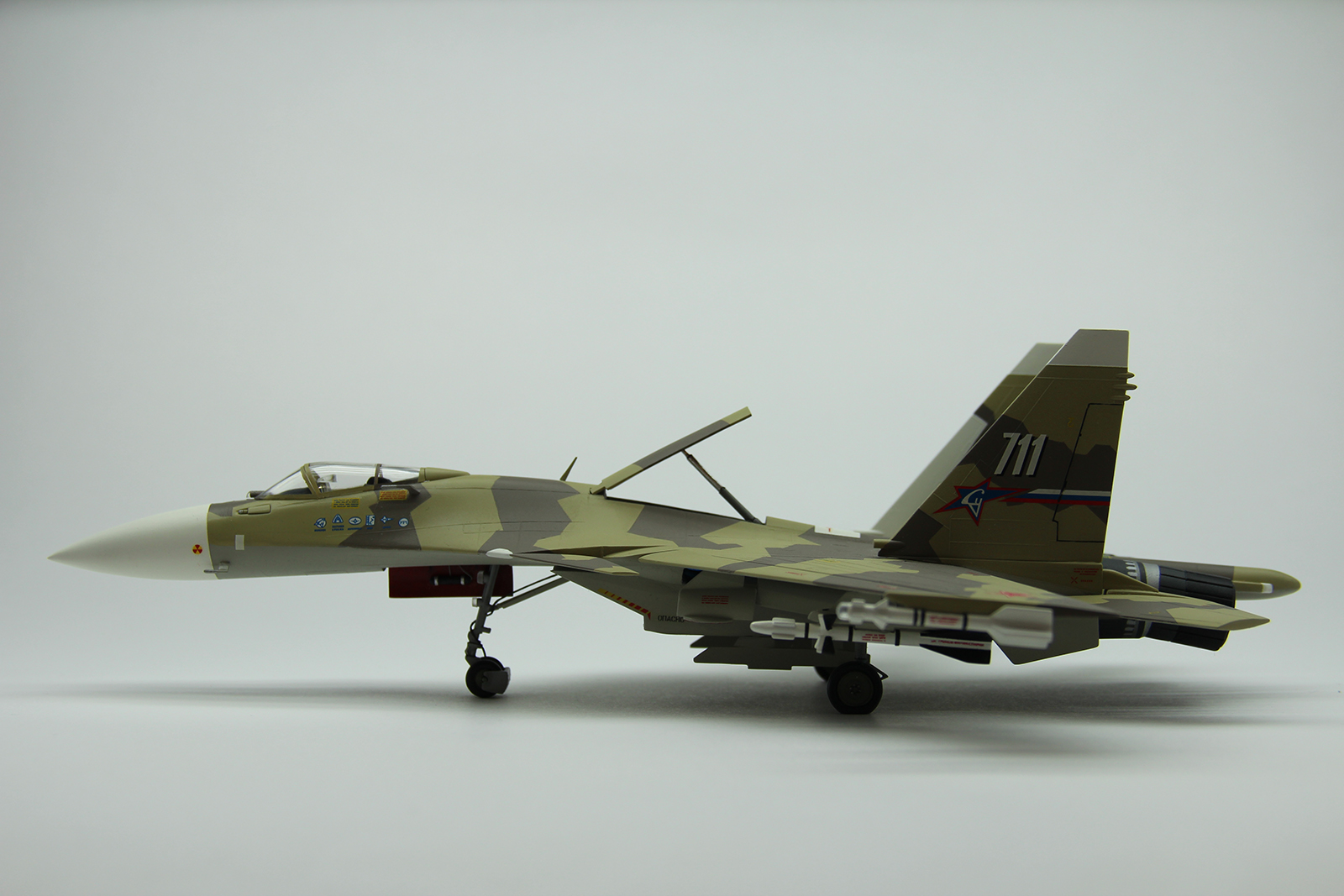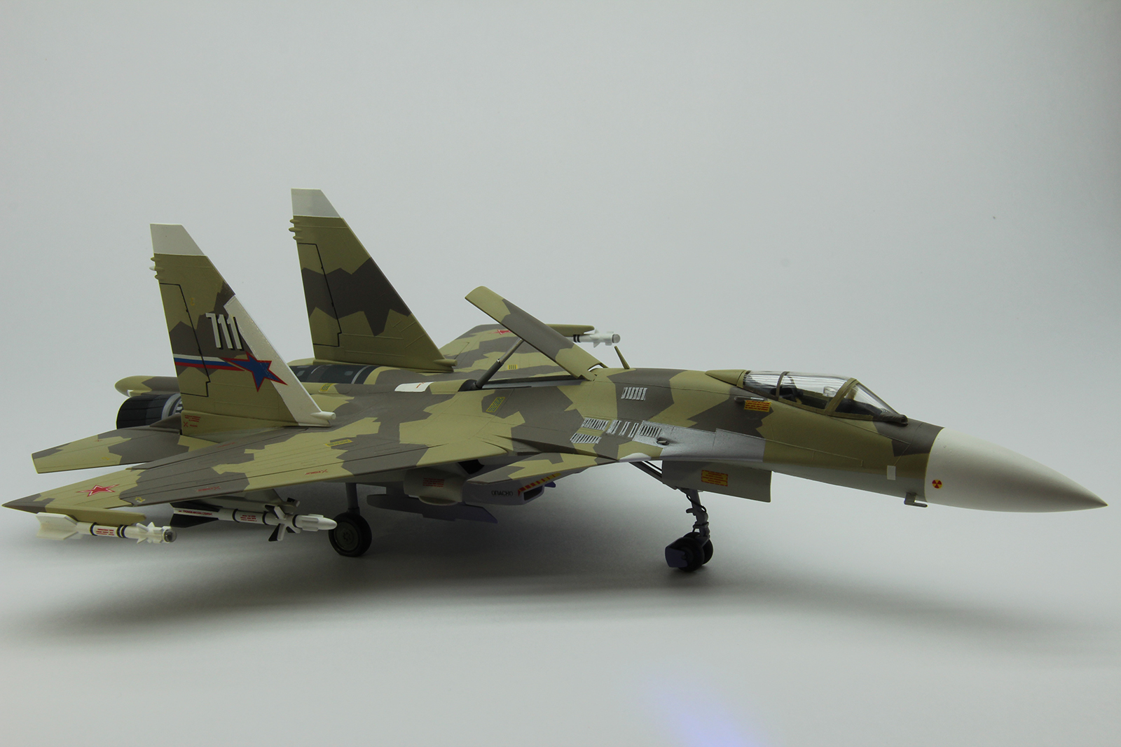 Работа понравилась! Пускай исходник плох, зато аккуратность автора позволила создать зрелищную модель. Правда, вооружения и пилонов он не носил, кроме двух на законцовках крыла. Такой набор и у меня был, собран очень давно и криво. Всё хочется восстановить. Ваша работа - как образец нужного результата )