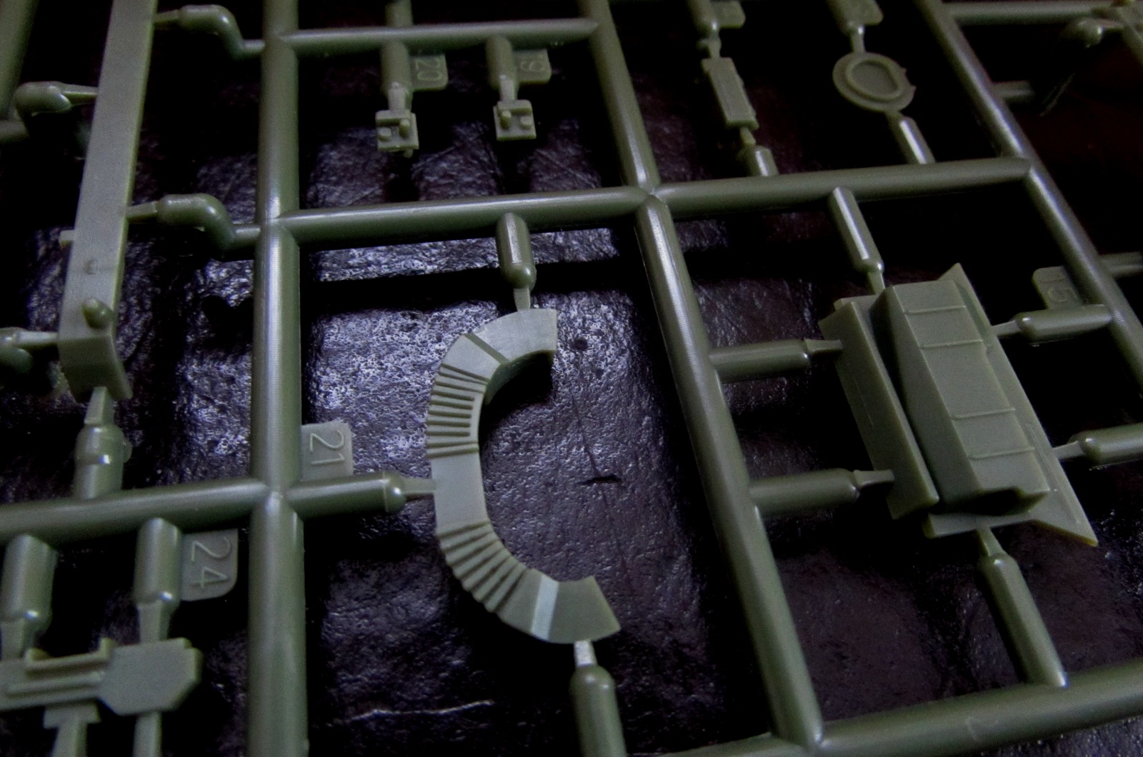 Детали, стандартно для фирмы, крепятся к литникам ну очень прочно: 9 питателей для боковины, и 4 питателя на ствол - это явный перебор. К тому же, такое крепление требует очень тщательной зачистки: чуть-чуть недоскребете зад корпуса - получите щели. Так что будьте осторожны!