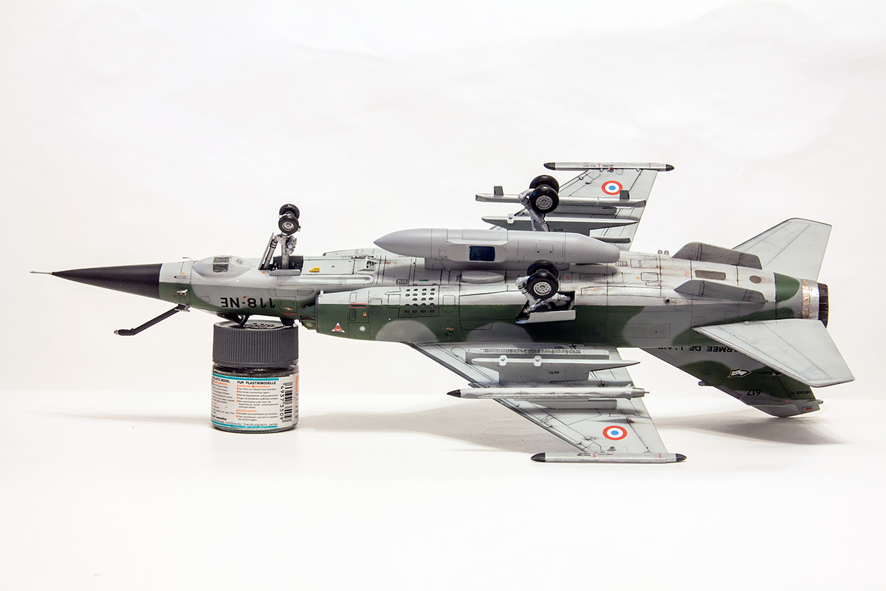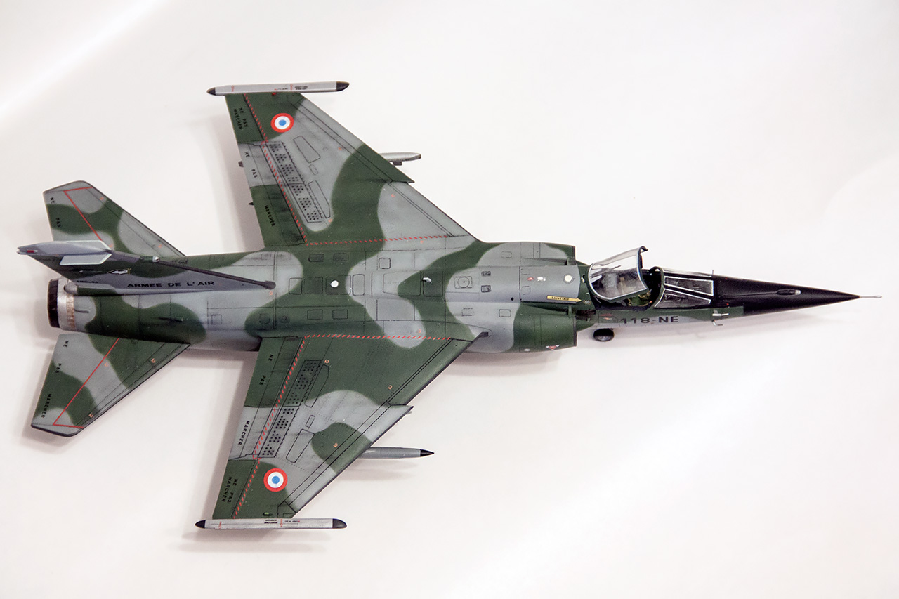 В модели применены кабина Неомега, сопло AML, стойки из белого металла SAC (еще та дрянь), воздухозаборники от Павлы, разведконтейнер Presto и блоки Corail от L'arsenal и декаль MissionMark. Декали очень порадовали, качество отменное. Подложка очень тонкая, на поверхность прилегают отлично, цвета насыщенные и непрозрачные. Мелочевка (антенны, БАНО, стойки, ниши, ВЗ) вся переделана или сделана с ноля, т.к. Итал дает пластик на ранний вариант Миража. Красил ХоббиКолором учитывая рекомендации по высветлению из инструкции к декалям.